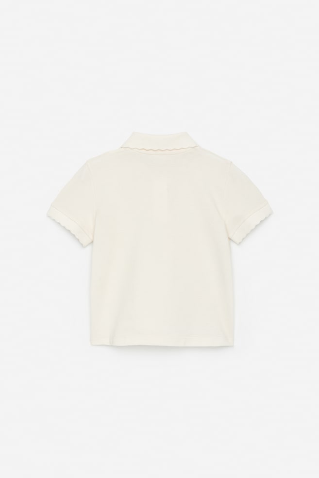Рубашка поло с короткими рукавами из хлопкового пике. Изделие имеет фестончатые края на ребристом воротнике и короткую планку с пуговицами. Три пуговицы. Длина: Стандартная длина Длина рукава: Короткий рукав Покрой: Стандартный покрой Воротник: Отложной воротник Стиль: Рубашка пике Вырез горловины: Круглый вырез