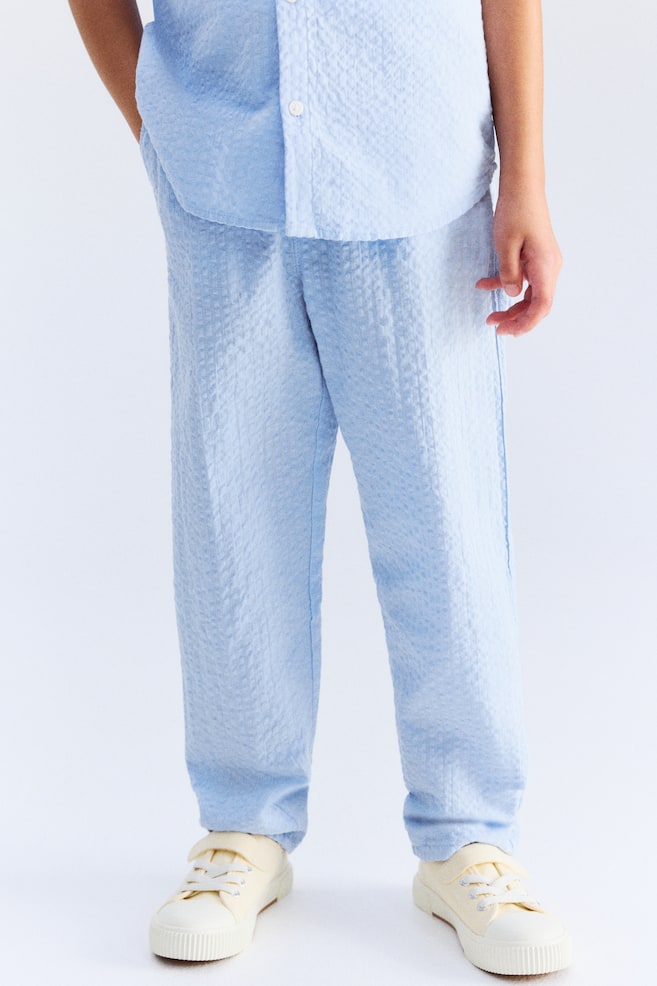 Бренд: H&M Цвет: голубой Состав: Подкладка карманов: 100% хлопок Внешний слой: 100% хлопок Другая информация о материале Общий вес этого изделия содержит не менее: 2% переработанного хлопка Вес мелких деталей, таких как нитки, пуговицы, молнии, украшения и принты, не учитывается. Общий вес изделия рассчитывается путем сложения веса всех слоев и основных компонентов. На основании этого мы рассчитываем, какая часть этого веса приходится на каждый материал. При расчете комплектов и мультипаков все изделия учитываются вместе как одно изделие. Материал: хлопок, сирсакер