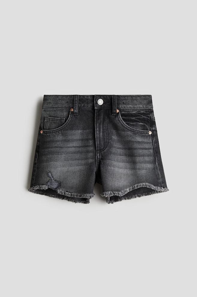 Шорты с пятью карманами из стираного хлопкового денима, свободного кроя. Высокая талия с регулируемой резинкой, застежка на молнию и пуговицу. Манжеты на штанинах с необработанным краем. Длина: Короткая Талия: Высокая посадка Покрой: Свободный Стиль: Trashed Полезно знать: Регулируемый пояс