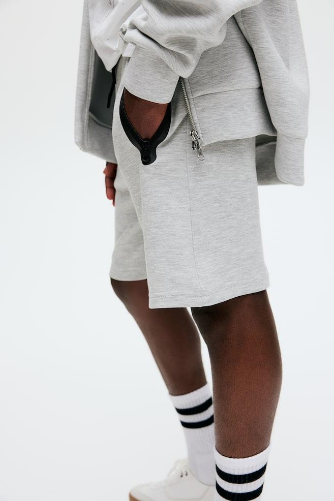 Шорты из плотного трикотажа. Карманы на молнии с окантовкой из тесьмы спереди и эластичный пояс на шнурке. Длина: до колена Посадка: стандартная Покрой: стандартный
