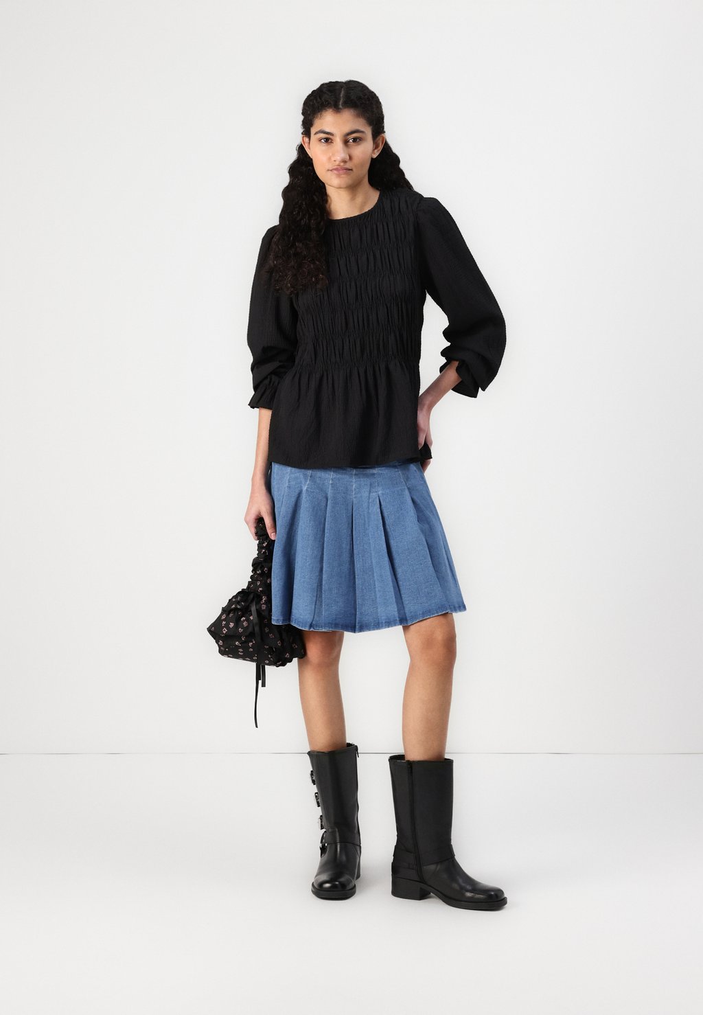 Мини-юбка PCSILJE PLISSÉ MINI SKIRT Pieces, деним 5 646₽