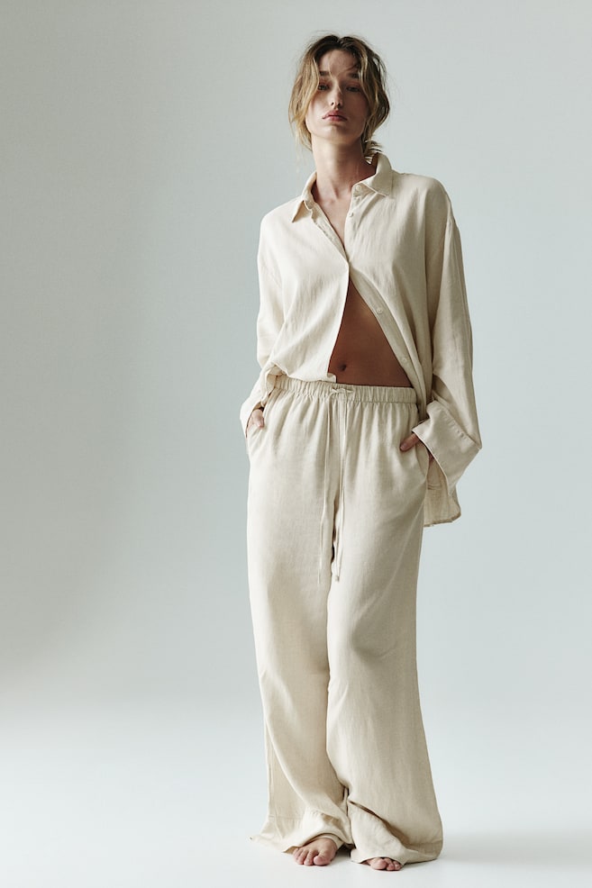 Широкие брюки из льняной смеси H&M, бежевый