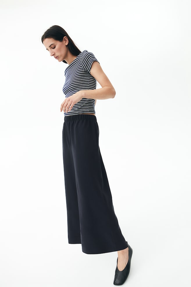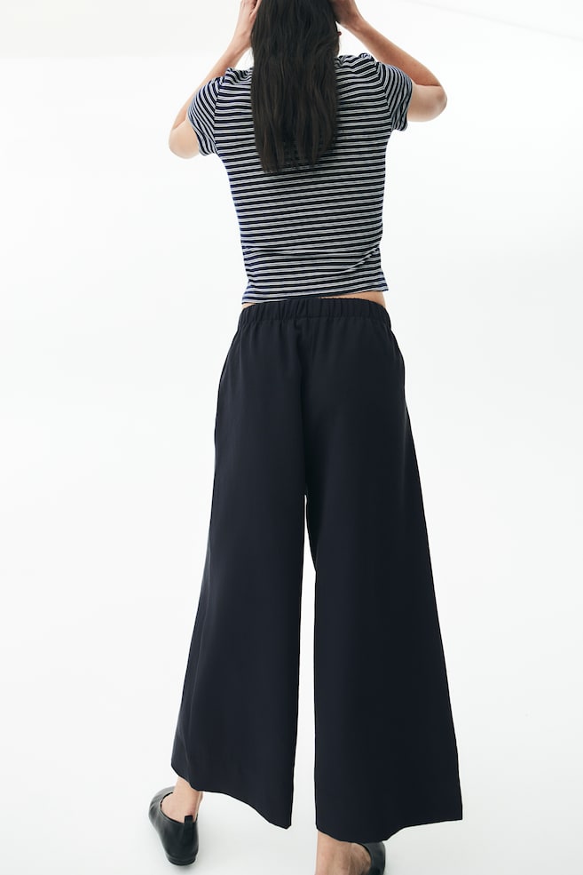 Свободные тканые брюки-кюлоты с высоким эластичным поясом, ложной ширинкой, незаметными боковыми карманами и широкими штанинами длиной 3/4. Рост модели: Модель ростом 179 см/5 футов 10 дюймов, на ней размер M. Рост: Внутренняя часть штанины: Длина: 58,0 см (размер M) Длина: Длина 3/4 Посадка: Высокая талия Посадка: Свободная посадка Стиль: Брюки-кюлоты, Брюки-накидки, Широкие