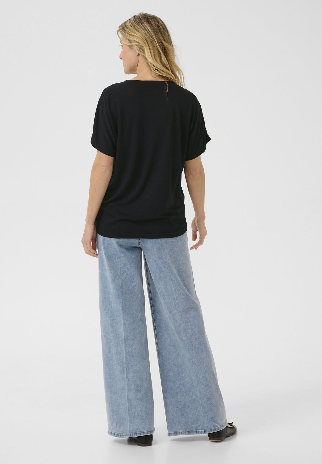 Футболка с принтом SONJA V-NECK  Cream, черный