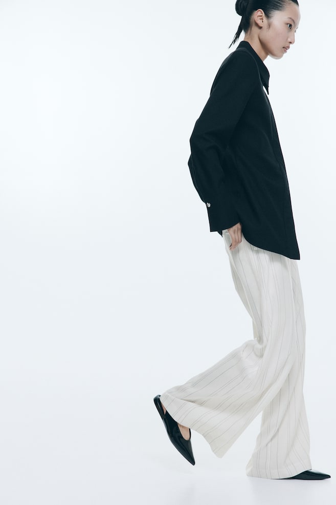 Весна/лето 2025 Брюки из смесовой вискозы. Высокий пояс с застежкой на молнию, потайные пуговицы и крючки. Косые боковые карманы, ложные прорезные карманы сзади и широкие штанины со стрелками спереди и сзади. Рост модели: Модель ростом 178 см/5 футов 10 дюймов, на ней размер 42. Рост: Длина по внутренней стороне штанины: 76,0 см (размер 40) Талия: Окружность: 78,5 см (размер 40) Длина: Длинная Посадка: Высокая Покрой: Стандартный Стиль: Широкий Коллекция: Вес/Лето 2025