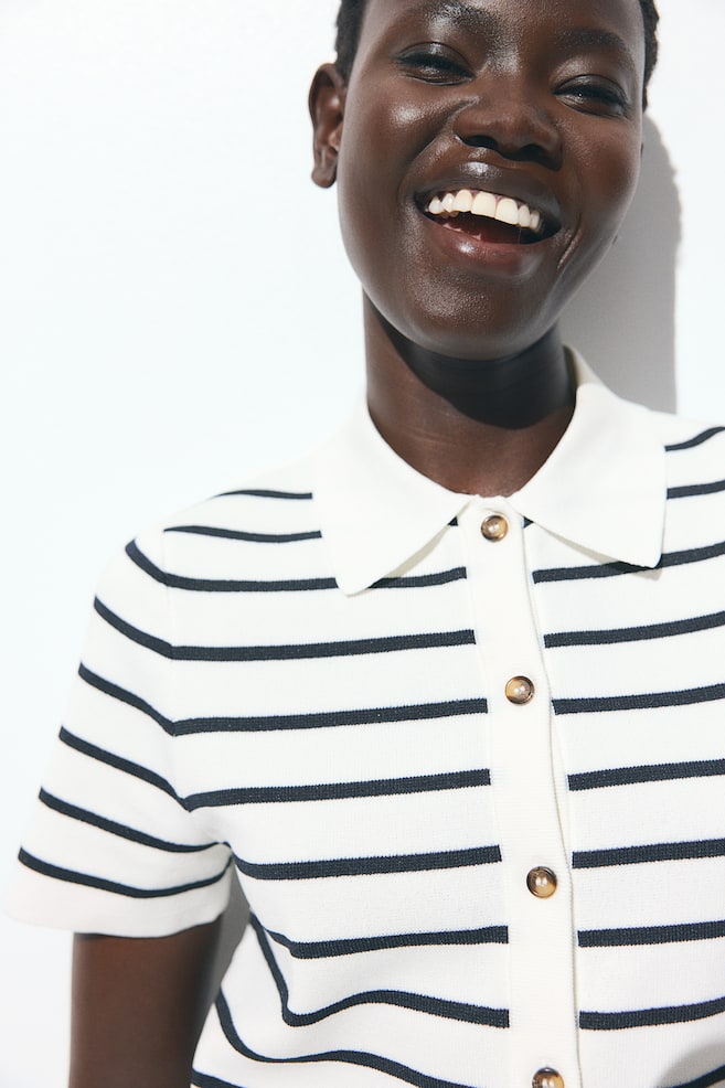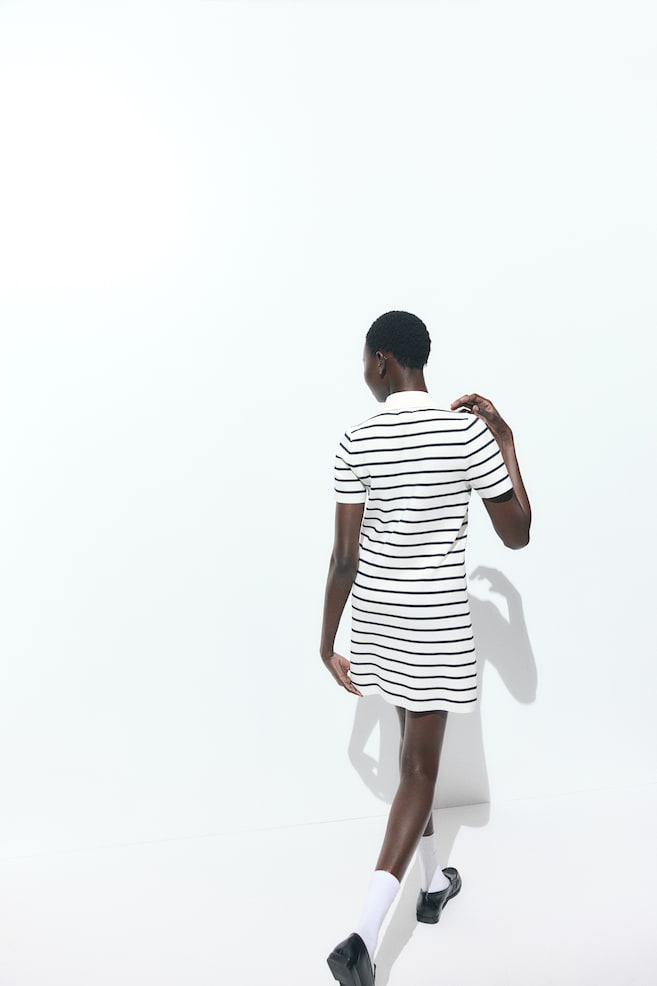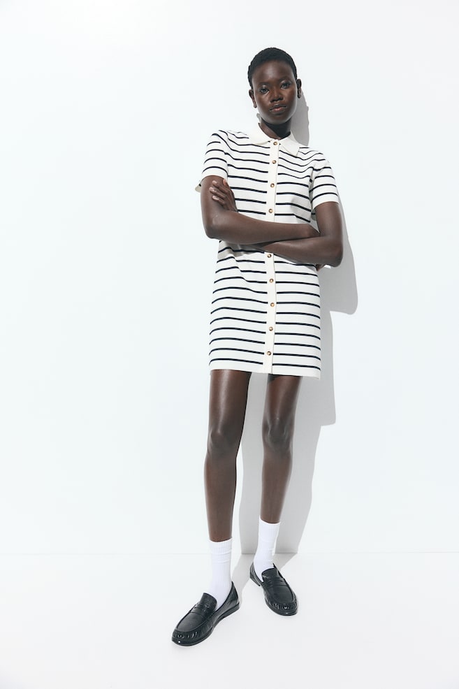 Короткое облегающее платье из мягкого тонкого трикотажа с воротником, застежкой на пуговицы и короткими рукавами. Рост модели: Рост модели 178 см/5 футов 10 дюймов, на ней размер S. Длина: Короткая Длина рукава: Короткий рукав Покрой: Облегающий Воротник: Отложной воротник Стиль: Платье-блузка