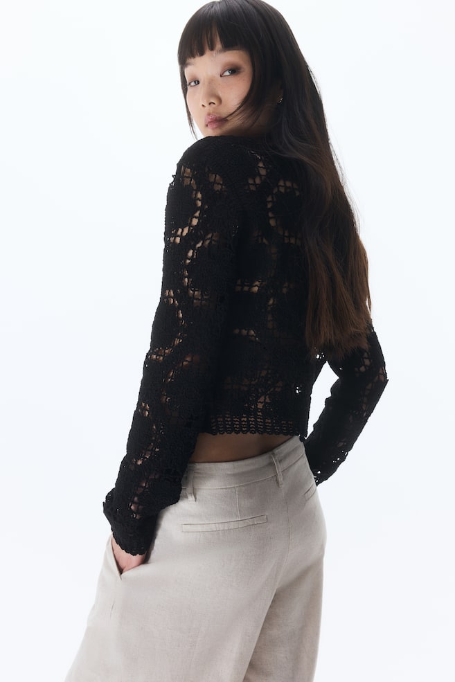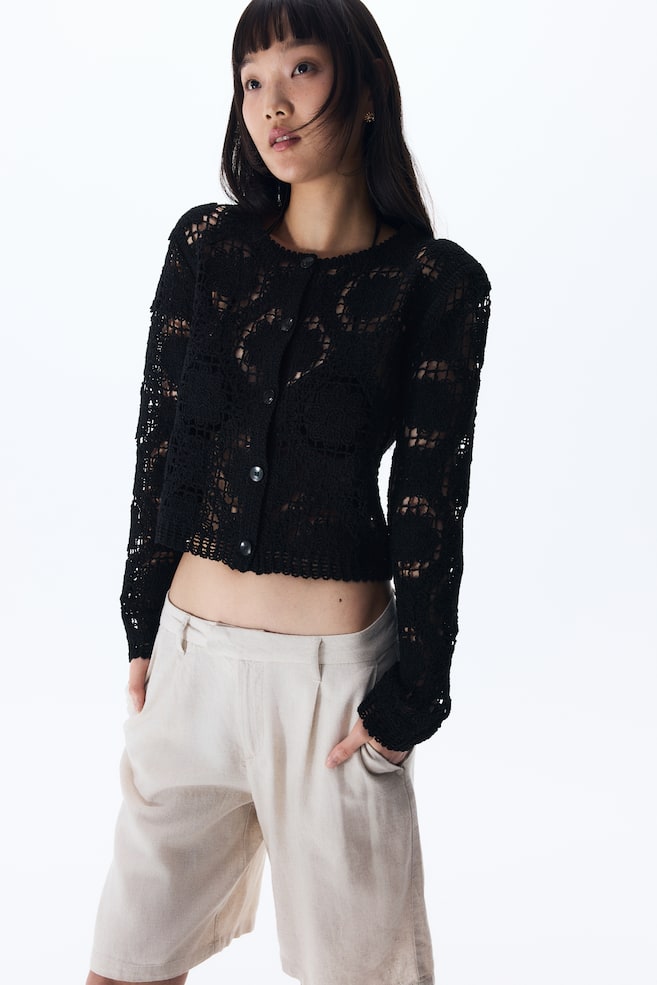 Кардиган в стиле вязания крючком H&M, черный 4 233₽