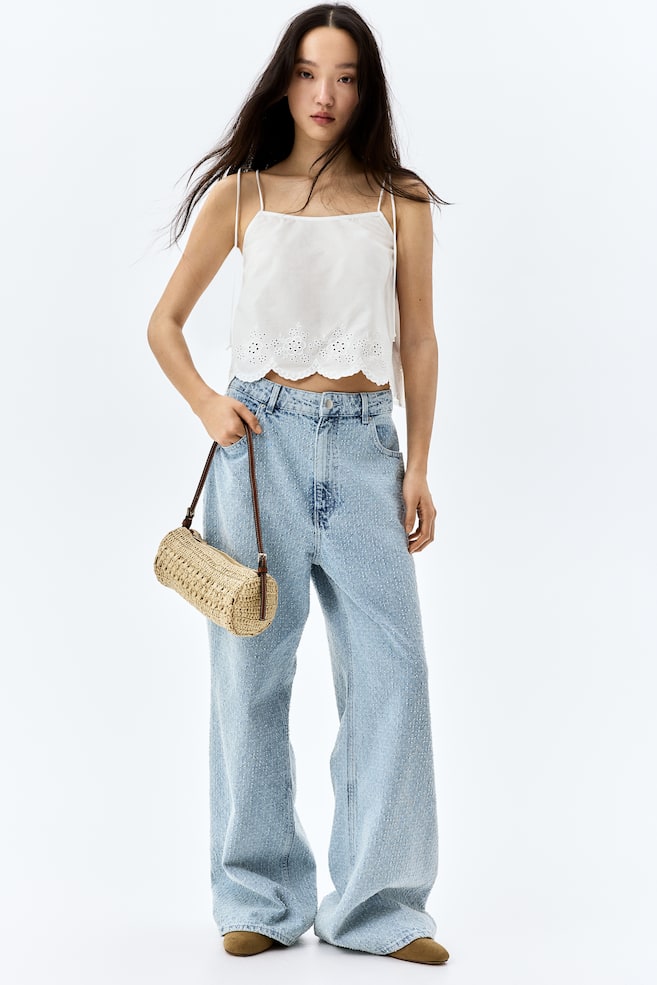 Верх из мягкой хлопчатобумажной ткани с узкими завязками и фестончатым подолом.
