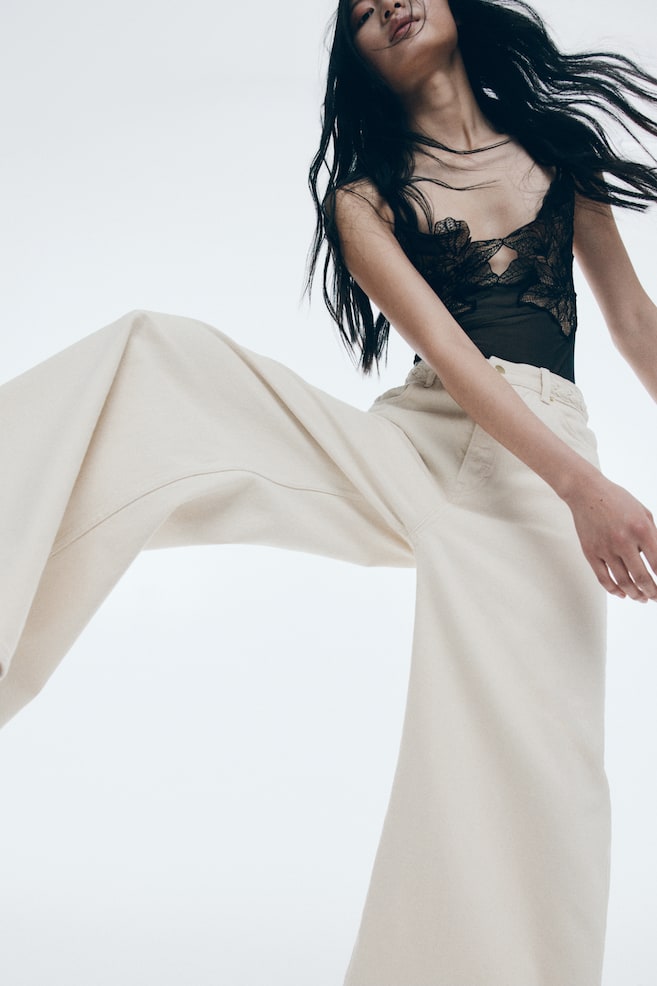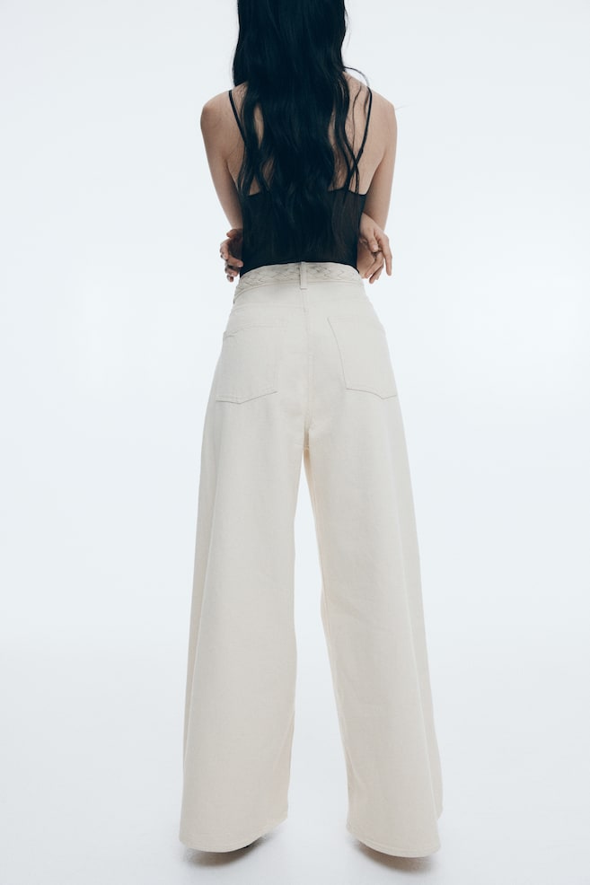 Широкие джинсы с плетеными деталями H&M, бежевый