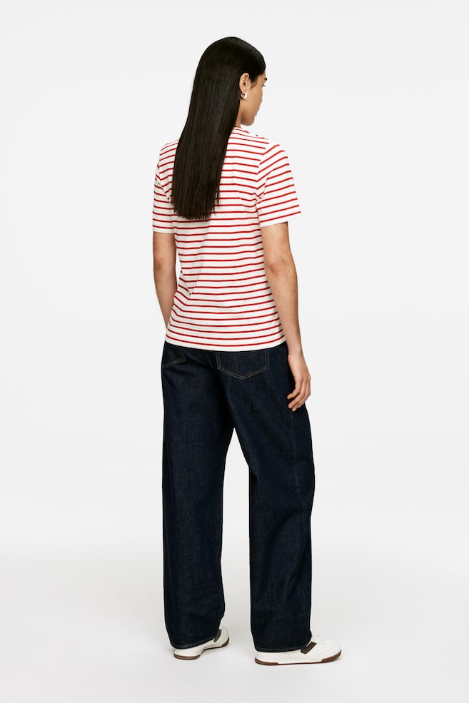 Трикотажная футболка из мягкого и плотного длинноволокнистого хлопка. Модель из одного джерси со стандартным кроем и ребристым кантом на круглой горловине.