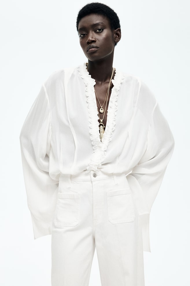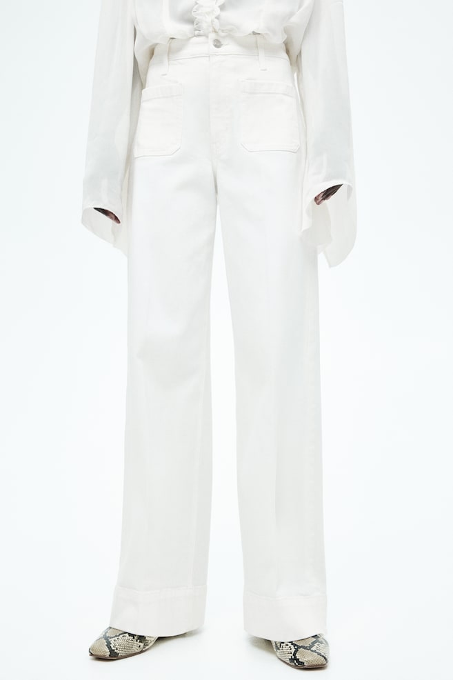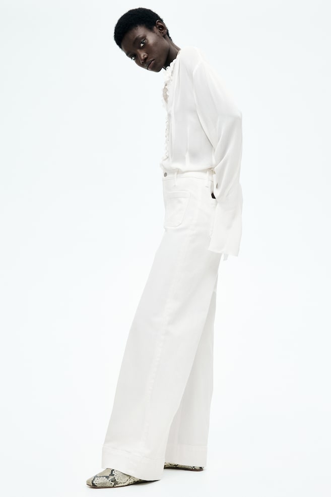 Бренд: H&M Цвет: белый Состав: Хлопок 99%, эластан 1% Другая информация о материале Общий вес этого продукта содержит не менее: 20% переработанного хлопка Вес мелких деталей, таких как нитки, пуговицы, молнии, украшения и принты, не учитывается. Общий вес продукта рассчитывается путем сложения веса всех слоев и основных компонентов. На основании этого мы рассчитываем, какая часть этого веса приходится на каждый материал. При расчете комплектов и мультипаков все изделия учитываются вместе как один товар. Материал: Хлопок, Джинсовая ткань