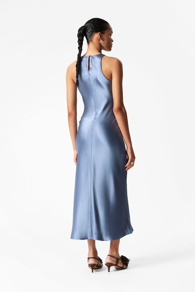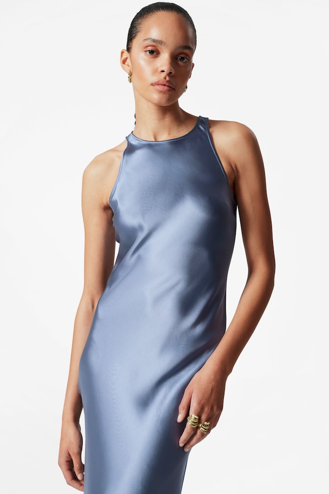 Атласное платье без рукавов с блестящей атласной отделкой и круглым вырезом. На шее имеется застежка-замочная скважина. Длина платья: 122,5 см (EU 36 / UK 8 / US 4) Длина: миди Покрой: стандартный Вырез: круглый Концепция: СОЗДАНО В СТОКГОЛЬМЕ