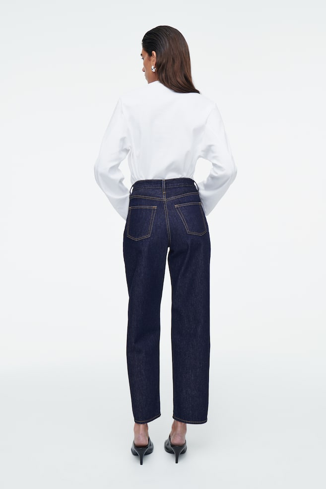 Хлопок Эти джинсы цвета индиго изготовлены из переработанного хлопка и органического хлопка без добавления эластичных волокон. Благодаря длине до щиколотки это идеальный выбор, если вы хотите продемонстрировать свои сандалии или лоферы. Зауженный крой, высокая талия, длина до щиколотки, неэластичная застежка-молния, классический дизайн с пятью карманами. Переработанный хлопок состоит из волокон из материалов до и после потребления, которые перерабатываются в новую пряжу. Внешний материал: 80% переработанного хлопка, 20% органического хлопка. Подробности не указаны/Машинная стирка по внутренней стороне штанины для размера 27 = 73 см/На модели размер 27 Длина: 7/8 Посадка: Высокая талия Покрой: Стандартный Стиль: Зауженный Полезная информация: Хлопок