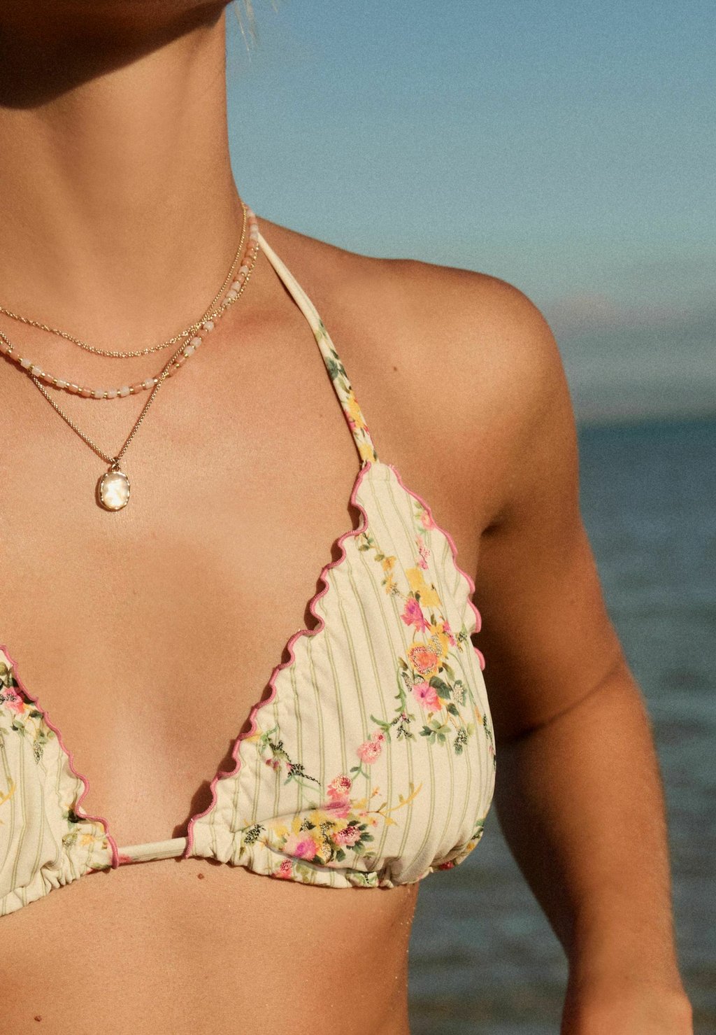 Верх бикини REGULAR FIT - EMBROIDERED LETTUCE EDGE  Next, бежевый
