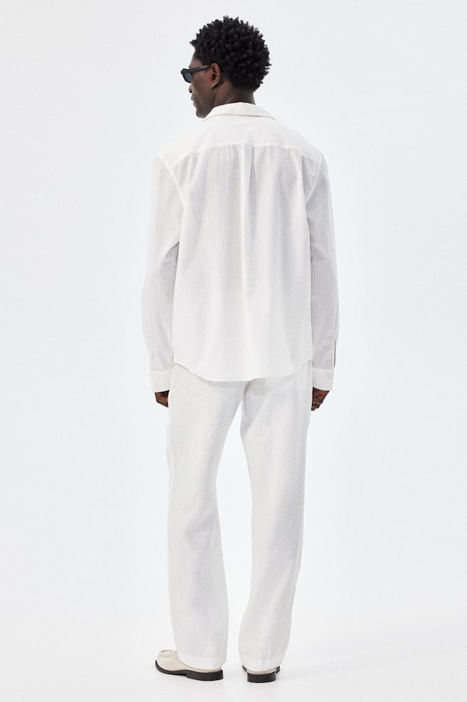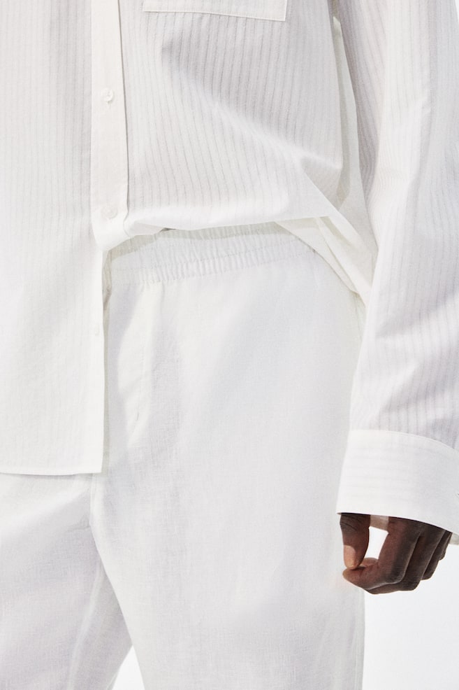Бренд: H&M Цвет: белый Состав: Подкладка карманов: полиэстер 65%, хлопок 35% Внешний слой: лен 100% Другая информация о материале Общий вес этого продукта содержит не менее: 8% переработанного полиэстера Вес мелких деталей, таких как нитки, пуговицы, молнии, украшения и принты, не учитывается. Общий вес продукта рассчитывается путем сложения веса всех слоев и основных компонентов. На основании этого мы рассчитываем, какая часть этого веса приходится на каждый материал. При расчете комплектов и мультипаков все изделия учитываются вместе как один товар. Материал: Лен