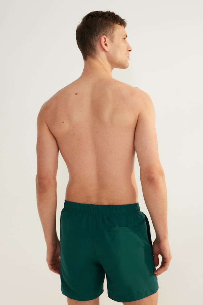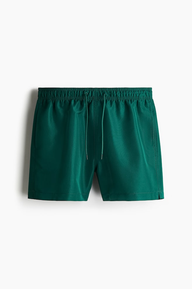 Тканые шорты для плавания с эластичным поясом на шнурке, боковыми карманами и задним карманом на липучке. Короткие разрезы по бокам штанин и сетчатые внутренние трусики. Рост модели: Рост модели 189 см/6 футов 2 дюйма, размер M. Длина: Короткая Посадка: Стандартная