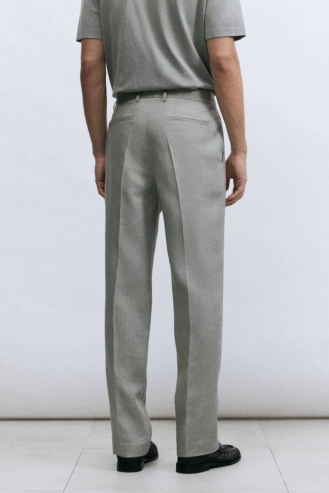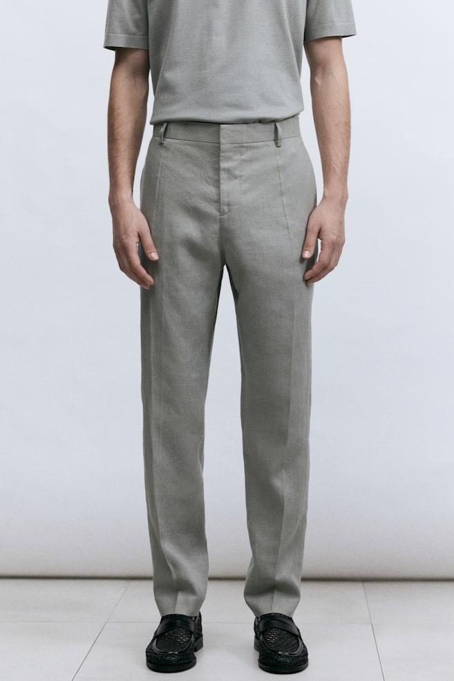 Костюмные брюки H&M Premium Selection из воздушного льна с потайной застежкой на планку и застежкой-молнией. Боковые карманы, складки и прорезные задние карманы. Slim fit — это покрой, который адаптируется к контурам тела и создает стройный силуэт. Лен — дышащий материал, который выглядит красиво как в глаженом виде, так и в складках, и со временем становится мягче. Размер: Талия: Окружность: 94,5 см (размер 52) Внутренняя часть штанины: Длина: 78,0 см (размер 52) Длина: Длинная Посадка: Облегающая Покрой: Облегающий Стиль: Костюмные брюки Полезно знать: H&M Premium Selection