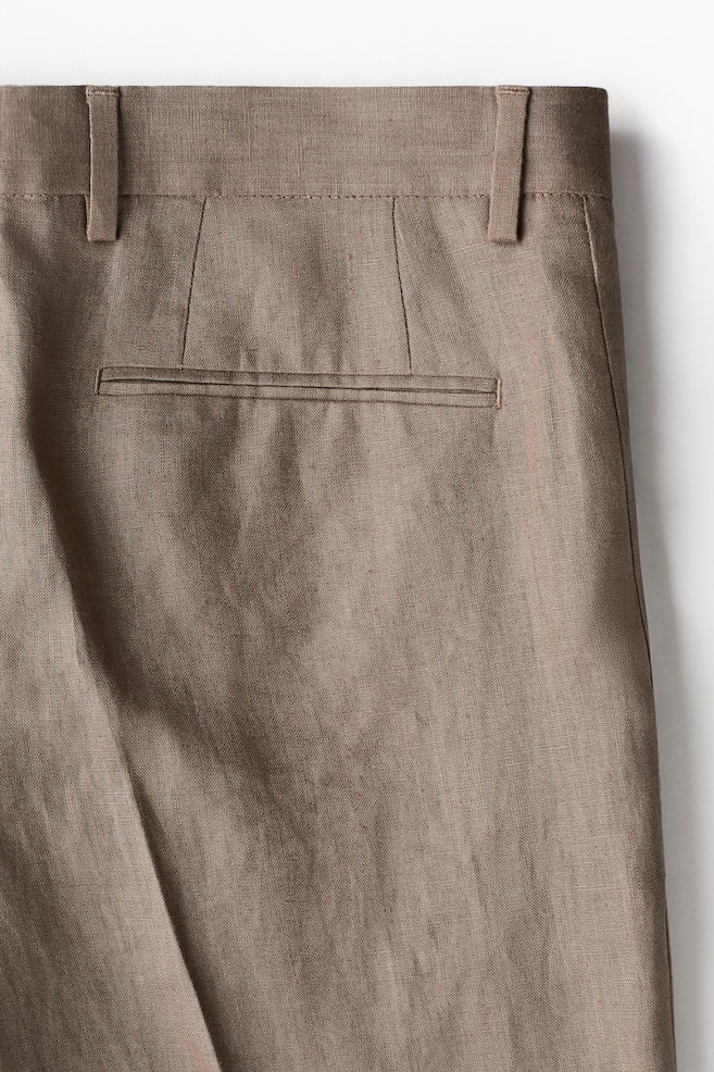 Костюмные брюки H&M Premium Selection из воздушного льна с потайной застежкой на планку и застежкой-молнией. Боковые карманы, складки и прорезные задние карманы. Slim fit — это покрой, который адаптируется к контурам тела и создает стройный силуэт. Лен — дышащий материал, который выглядит красиво как в глаженом виде, так и в складках, и со временем становится мягче.