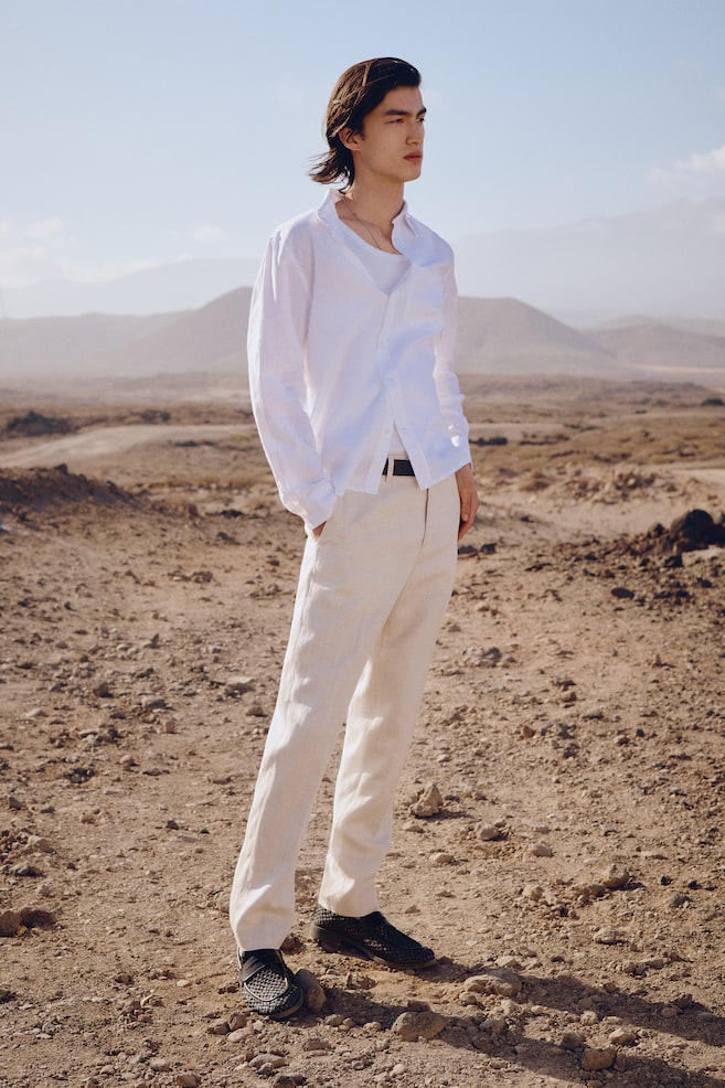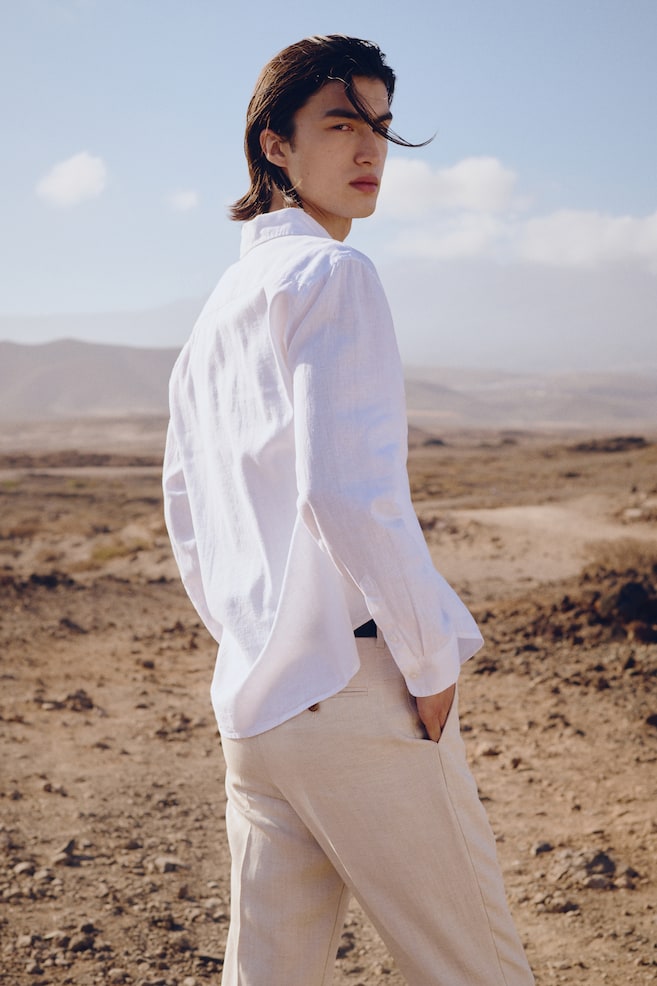 Рубашка из льняной ткани, классического кроя H&M, белый