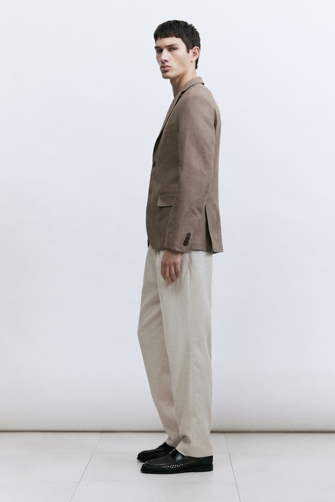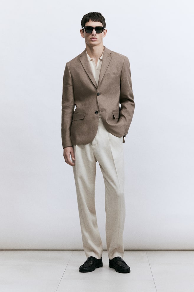 H&M Premium SelectionОднобортный пиджак из воздушного льна с заостренными лацканами, декоративными петлями для пуговиц, нагрудным карманом, передними карманами с клапанами и двумя внутренними карманами. Две пуговицы спереди, декоративные пуговицы на рукавах и двойной разрез сзади. Slim fit — это покрой, который адаптируется к контурам тела и создает стройный силуэт. На подкладке. Лен — дышащий материал, который выглядит красиво как после глажки, так и после сминания и со временем становится мягче. Рост модели: Модель ростом 188 см/6 футов 2 дюйма, на ней 48-й размер. Размер: Спинка: Длина: 74,5 см (размер 52) Рукав: Длина: 66,5 см (размер 52) Длина: Стандартная Покрой: Облегающий Воротник: Воротник с лацканами Стиль: Однобортный Полезно знать: H&M Premium Selection