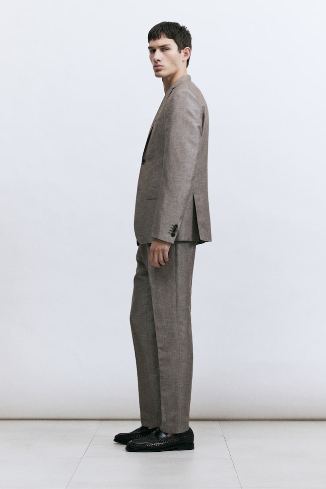 H&M Premium SelectionОднобортный пиджак из мягкой смеси шерсти и льна. С узким зубчатым лацканом, декоративной петлей и двумя пуговицами спереди. Прорезной карман на груди, прорезные карманы с клапанами спереди и три прорезных внутренних кармана. Декоративные пуговицы на рукавах и двойной разрез сзади. Slim Fit — это покрой, который адаптируется к контурам тела и создает стройный силуэт. Частично на подкладке.