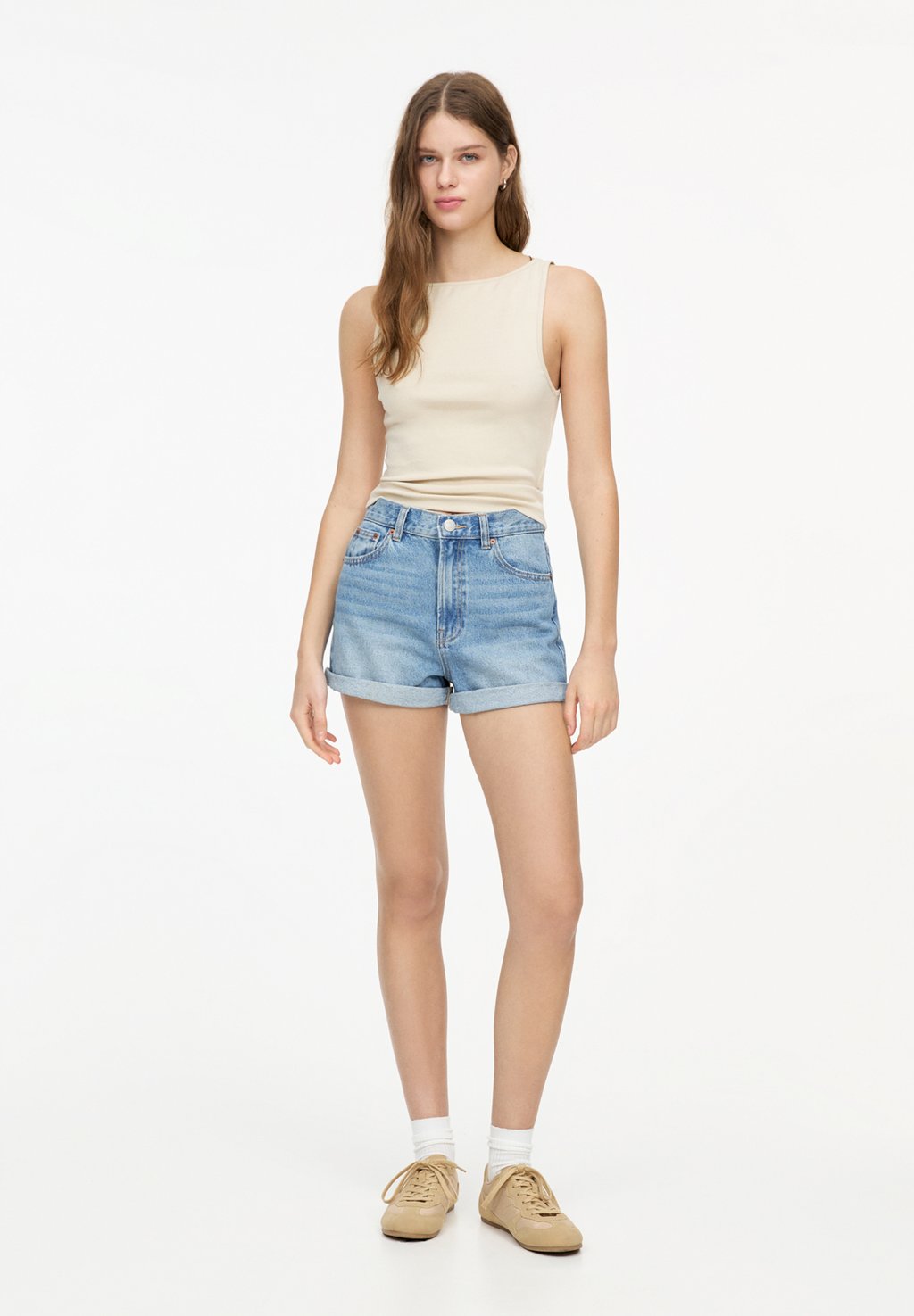 Джинсовые шорты MOM  PULL&BEAR, деним