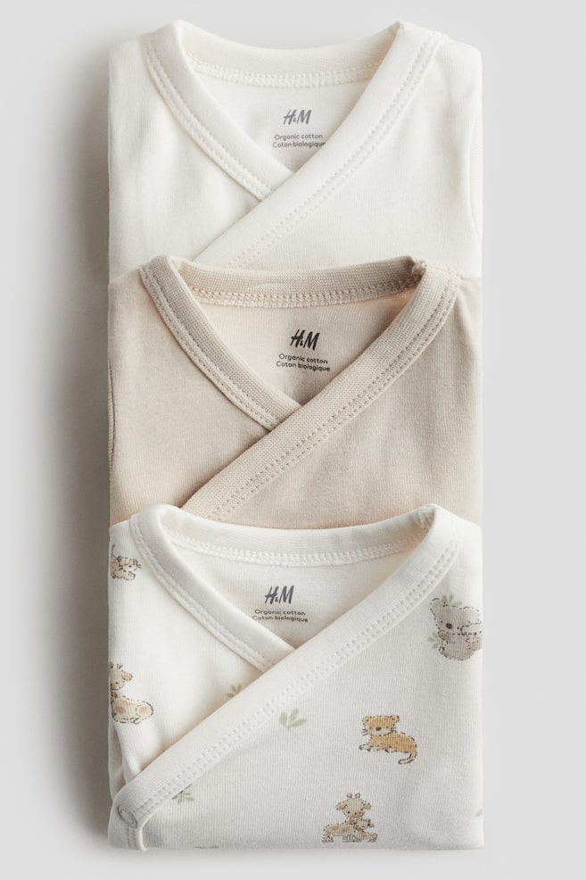 Боди с запахом из мягкого хлопкового трикотажа с короткими рукавами и застежками на кнопках с одной стороны и в промежности. Кол-во штук/пар: 3 Длина рукава: Короткий рукав Фасон: Крой с запахом Вырез горловины: V-образный