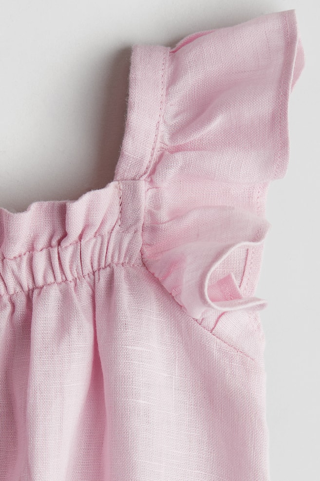 H&M AdorablesH&M Premium SelectionH&M Adorables. Комбинезон из мягкого, воздушного льна, идеально подходит для теплых летних дней. Эластичная резинка сверху и воланы на бретелях. Потайные кнопки внизу для легкой смены подгузника и узкие эластичные манжеты на ножках. Лен — это очень классическая ткань с легкой текстурой, которая быстро сохнет и со временем становится мягче. H&M Adorables — это тщательно подобранная коллекция классических и удобных вещей высокого качества. Длина: Короткая Длина рукава: Без рукавов Покрой: Стандартный Вырез: Квадратный Концепция: H&M Adorables Полезно знать: H&M Premium Selection