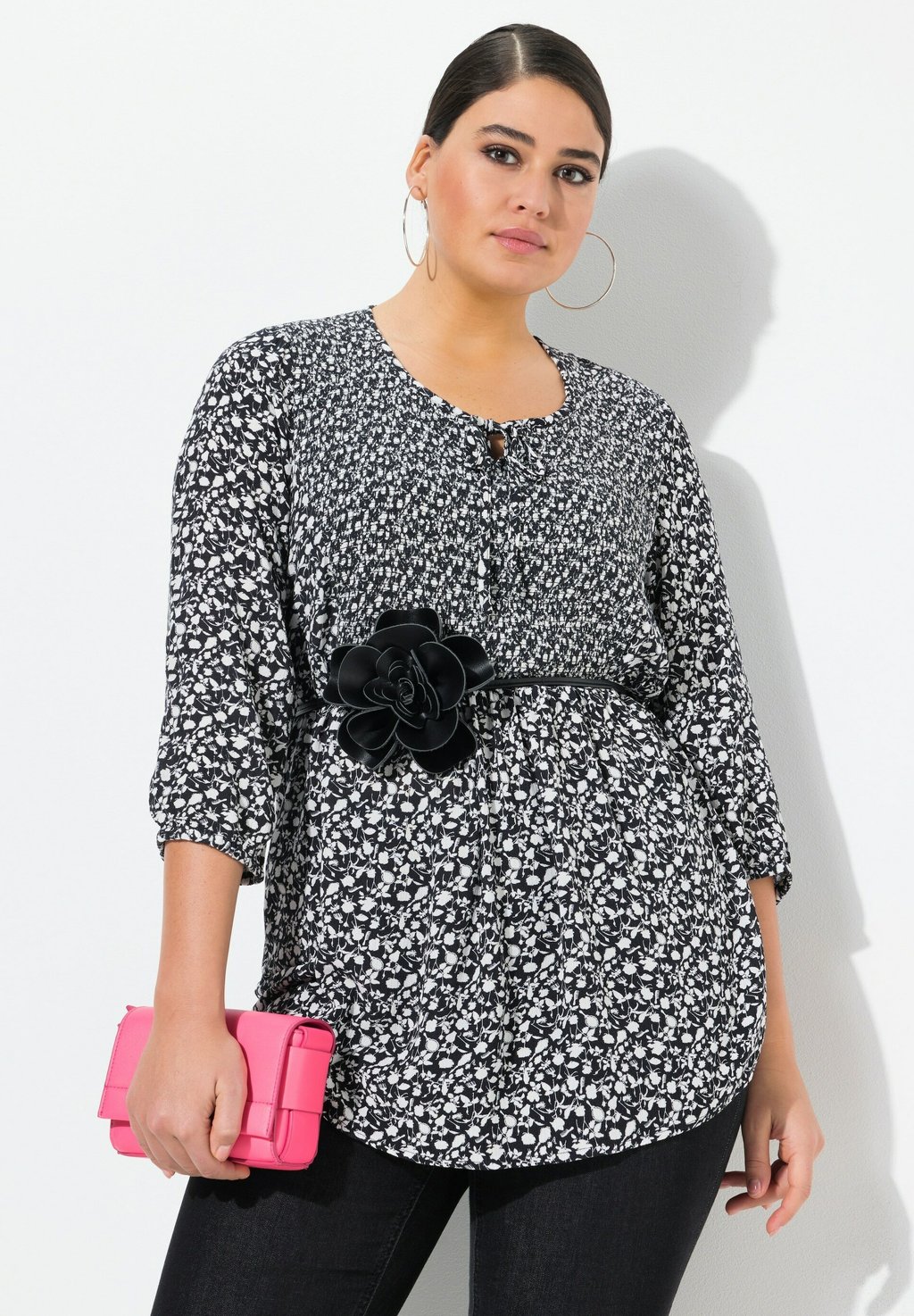Блуза ALLOVER PRINT SMOCKED Ulla Popken, черный