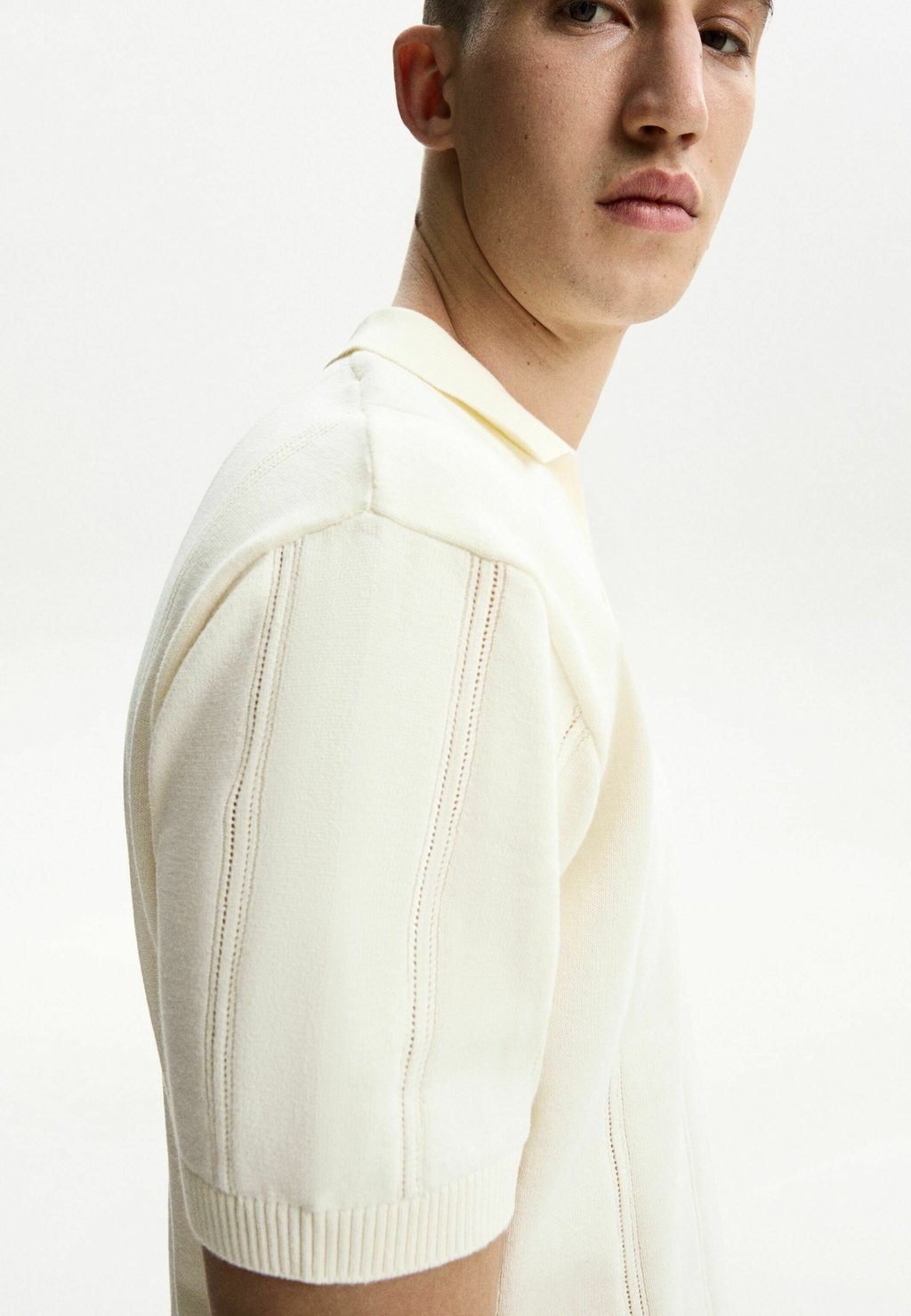 Рубашка поло TEXTURED SHORT SLEEVE Bershka, белый