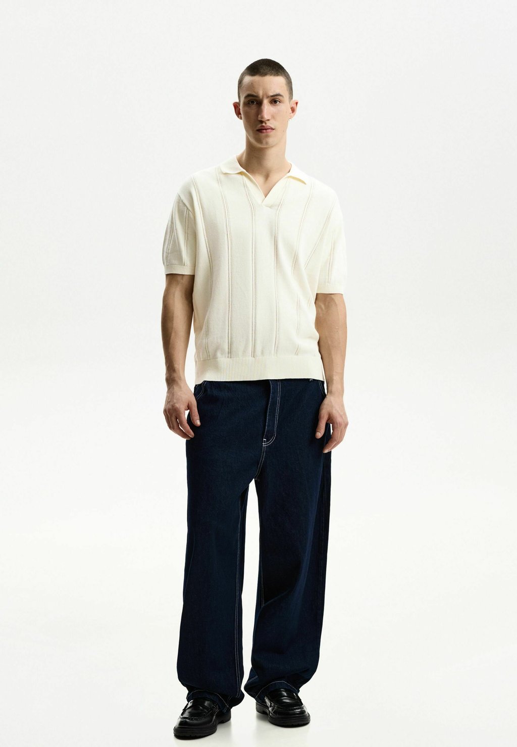 Рубашка поло TEXTURED SHORT SLEEVE Bershka, белый 2 933₽