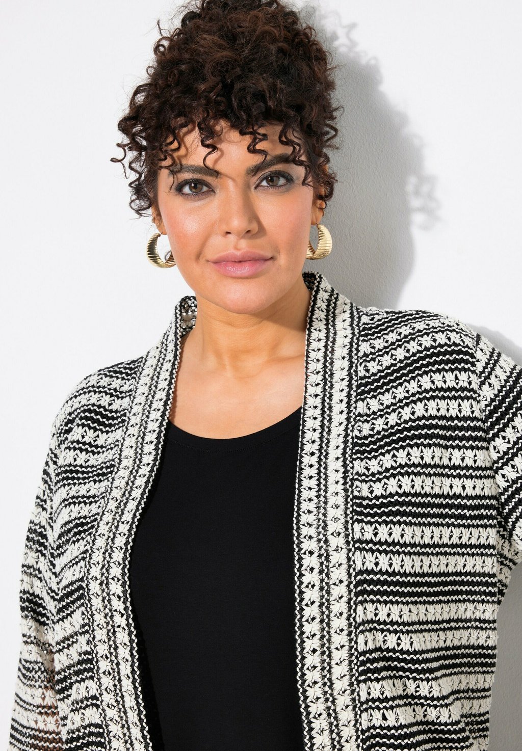 Кардиган OPENWORK STRIPED LONG SLEEVE Ulla Popken, черный