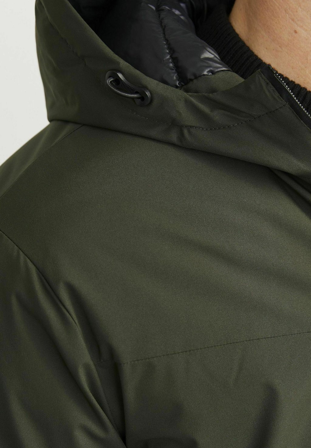 Детали капюшона: затягивающийся шнурок, на подкладке