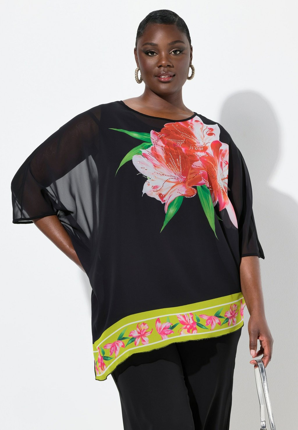Блуза FLOWER MOTIF LAYERED Ulla Popken, черный