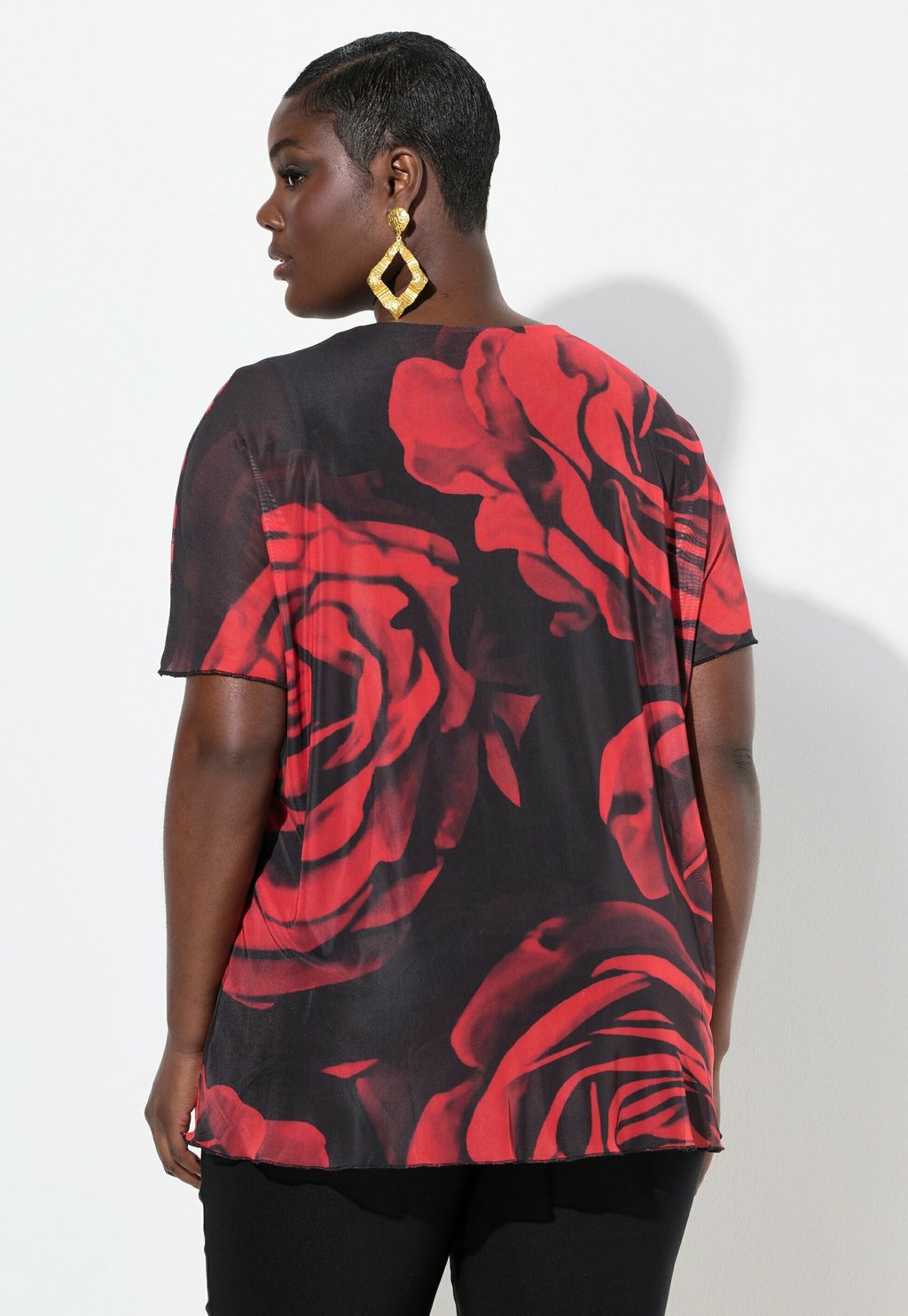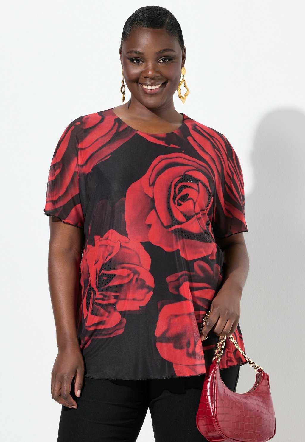 Блуза ROSE PRINT SHORT SLEEVE Ulla Popken, черный