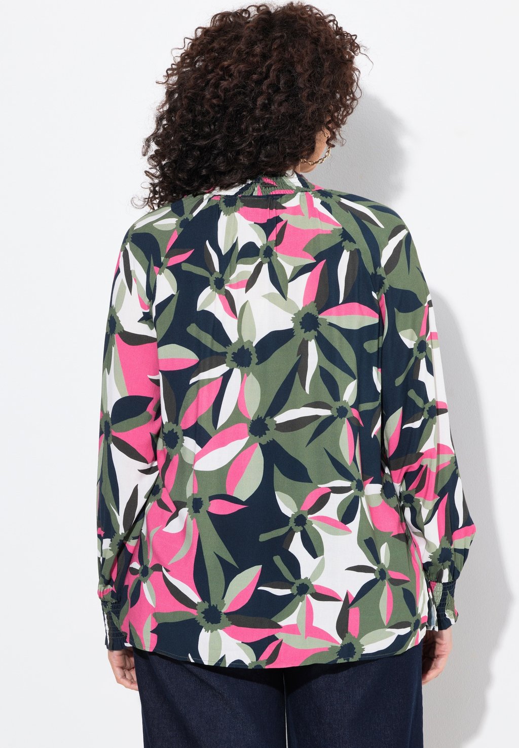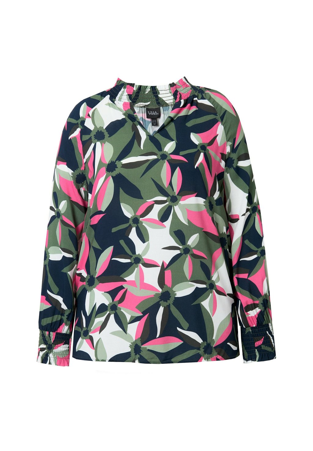 Блуза SMOCKED COLLAR FLOWER PRINT Ulla Popken, оливковый
