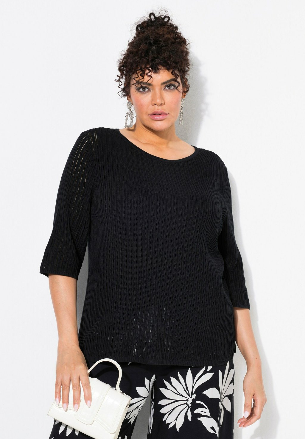 Джемпер OPENWORK STRIPED 3/4 SLEEVE Ulla Popken, черный
