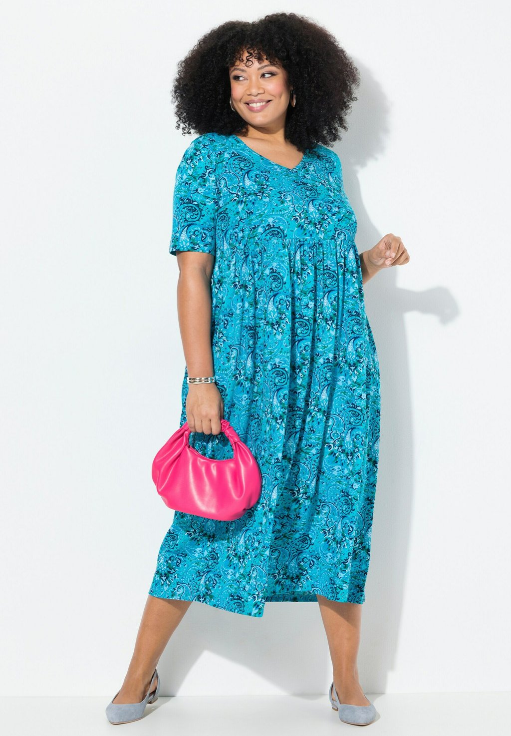 Платье из джерси PAISLEY PRINT EMPIRE A-LINE POCKET Ulla Popken, синий