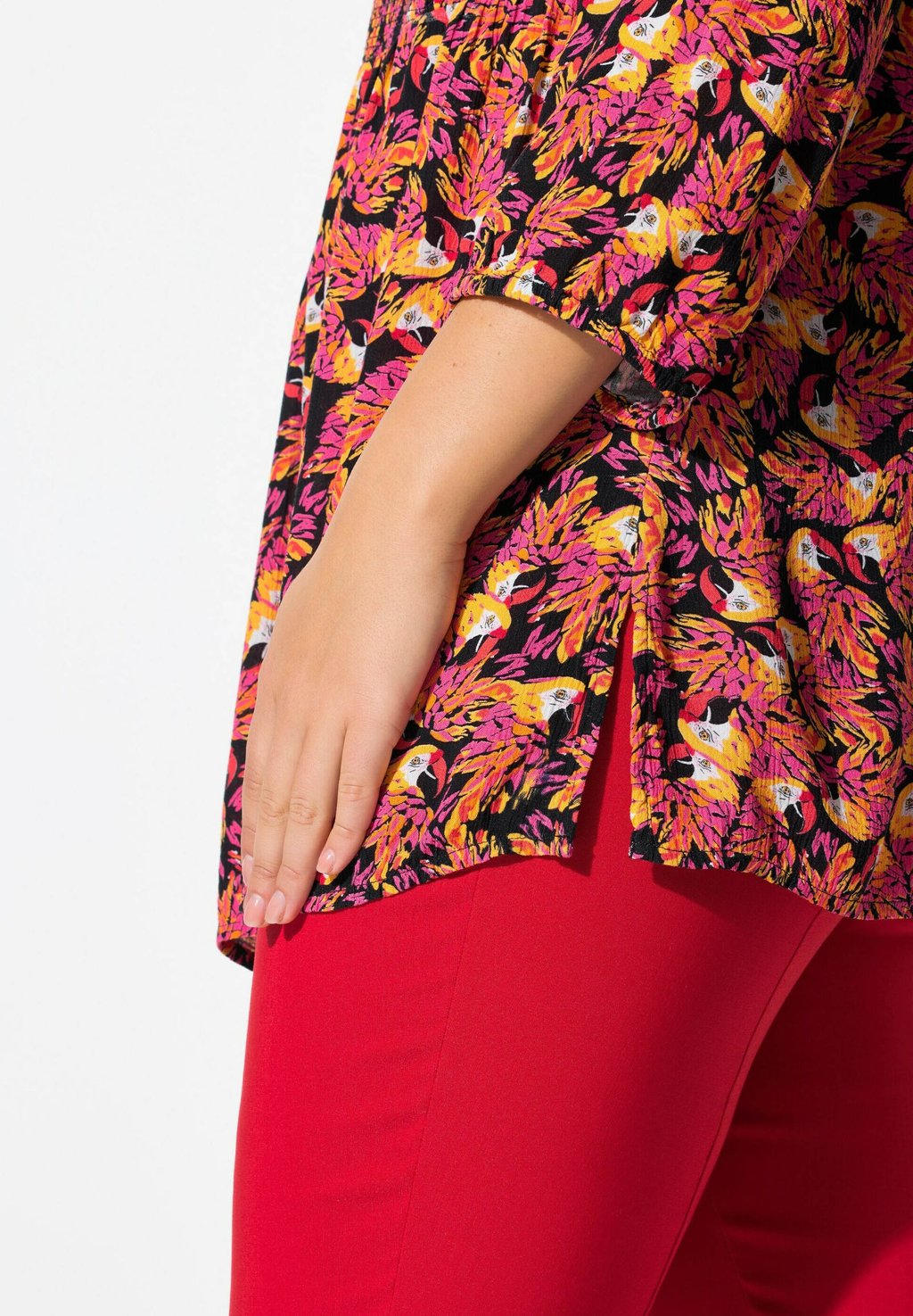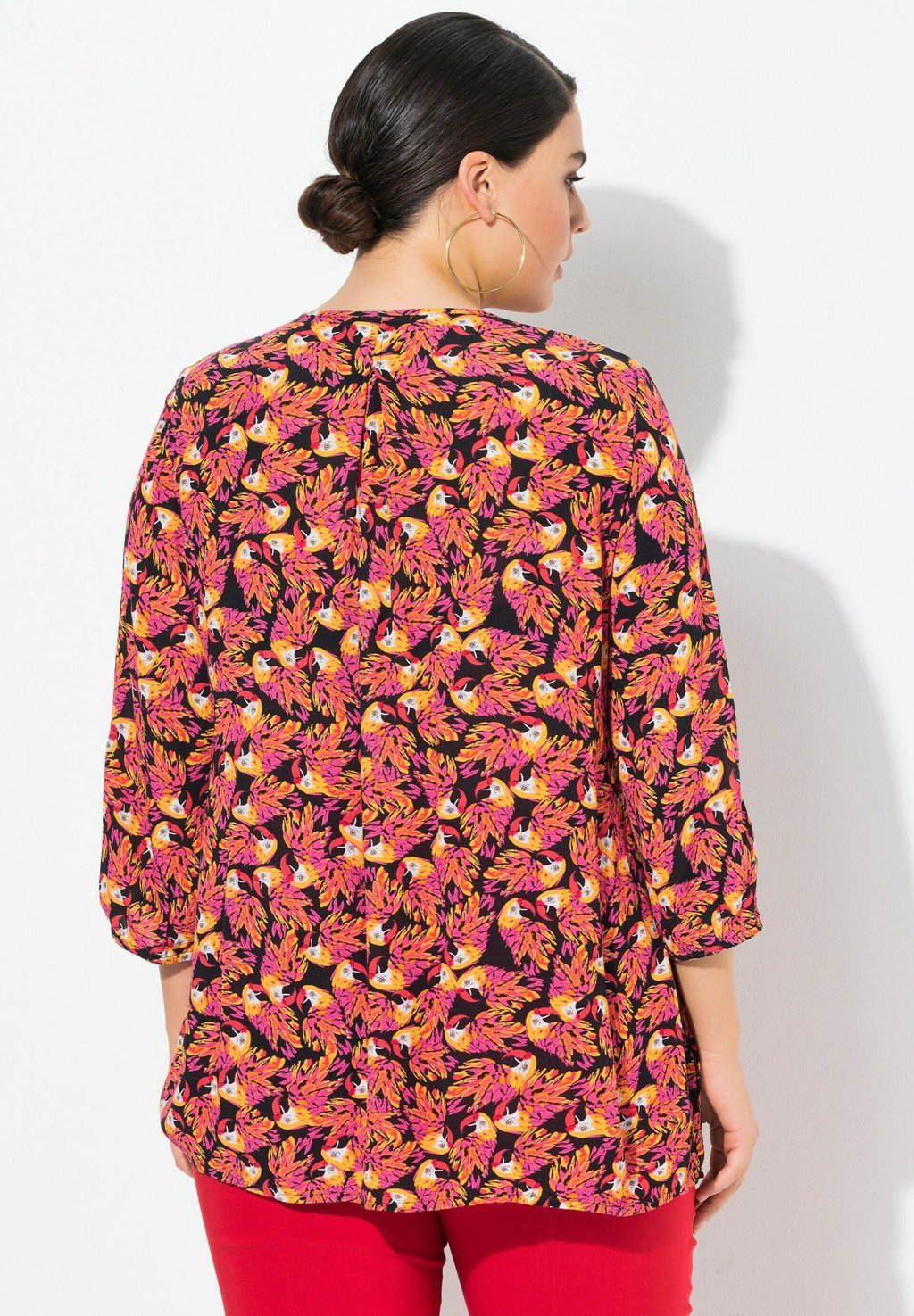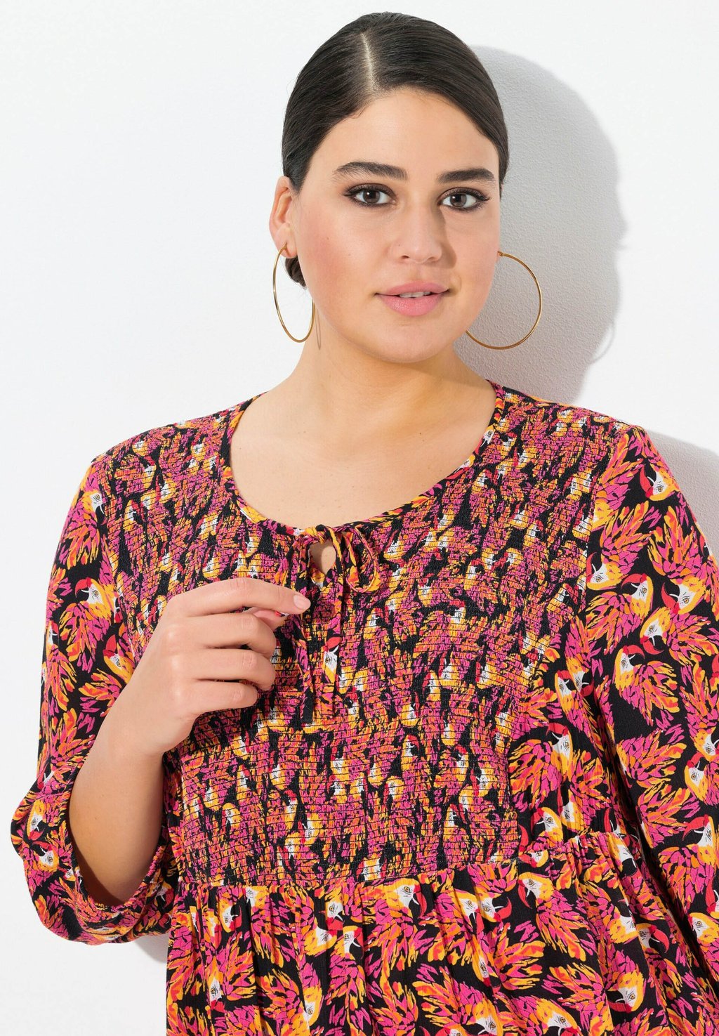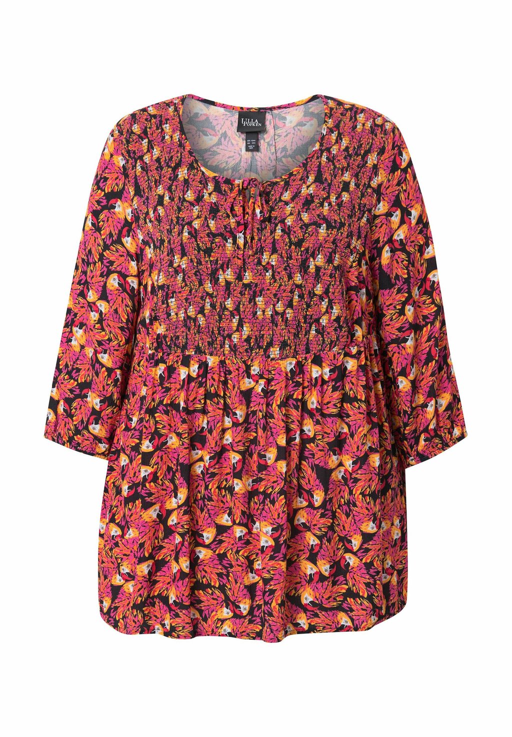 Блуза PRINTED SMOCKED BODICE 3/4 SLEEVE Ulla Popken, черный