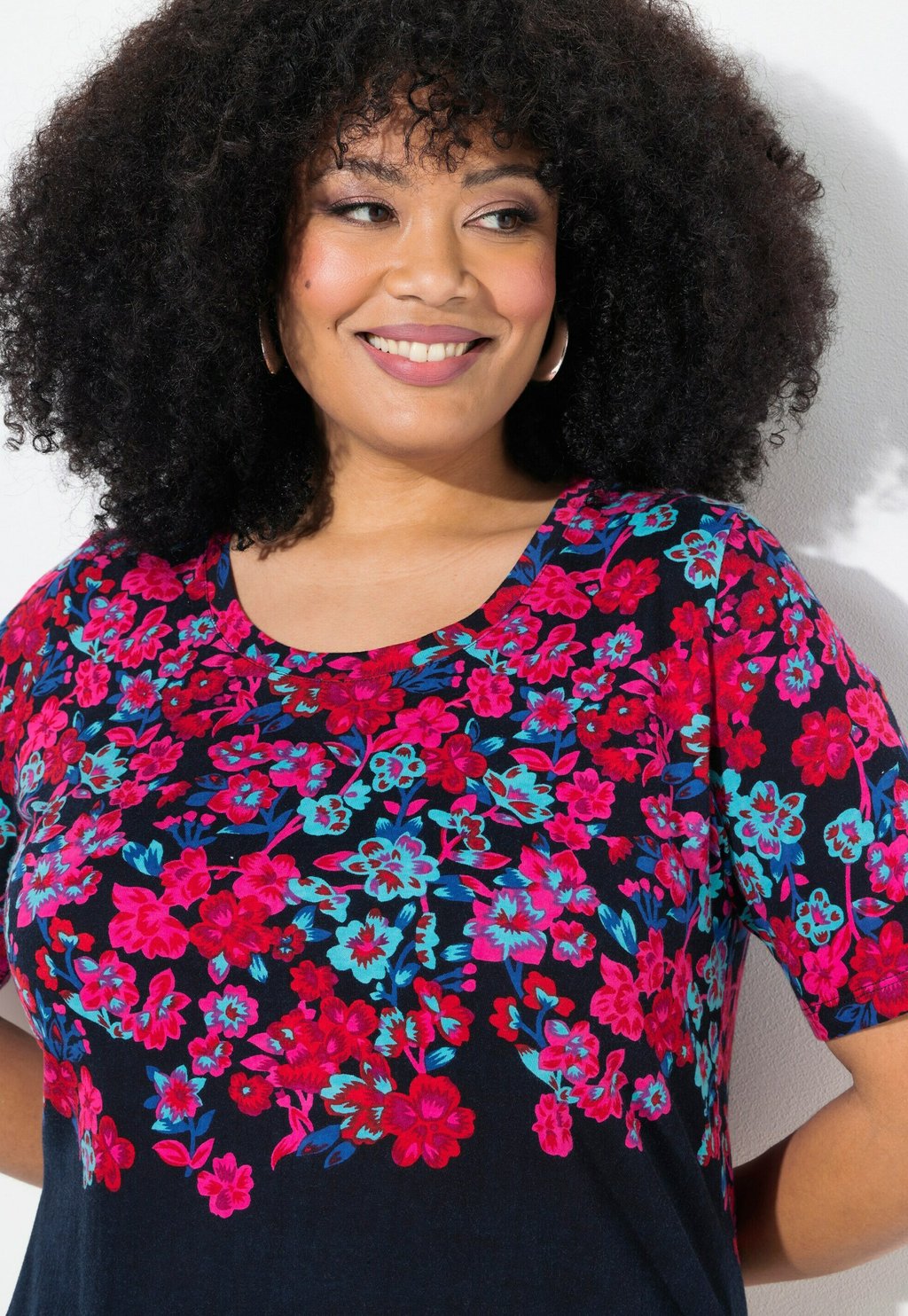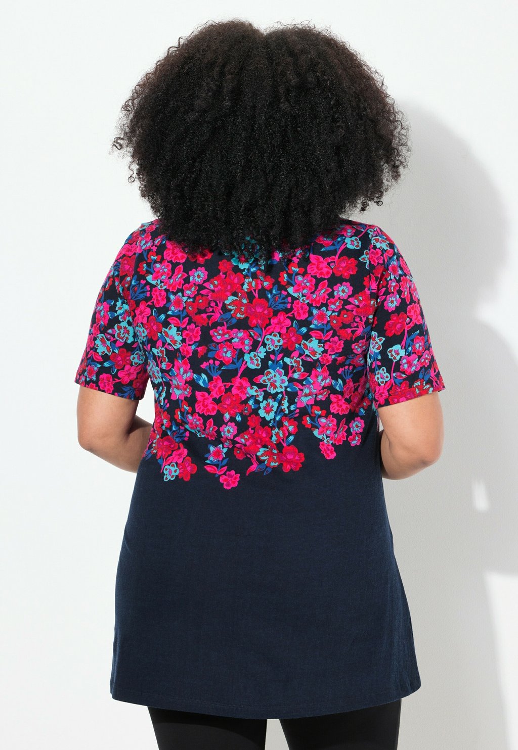 Футболка с принтом FLORAL Ulla Popken, темно-синий