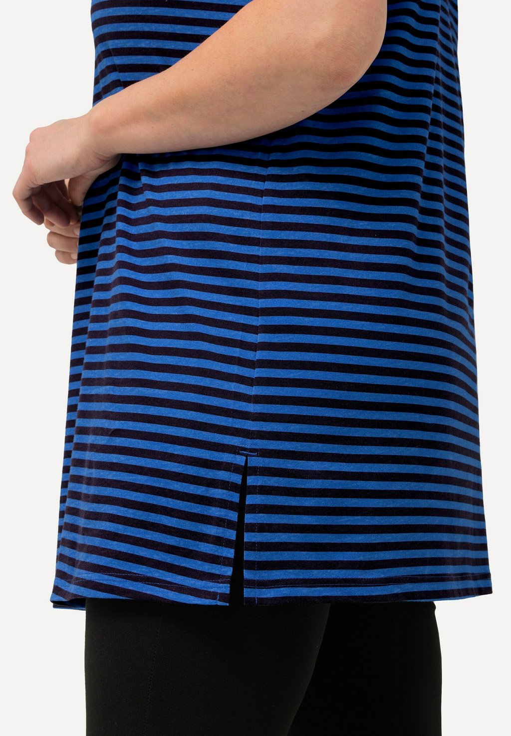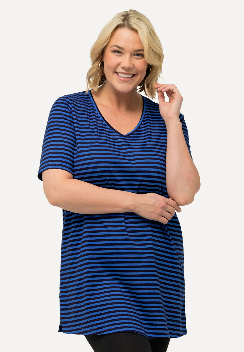 Футболка с принтом STRIPE V-NECK SHORT SLEEVE Ulla Popken, темно-синий