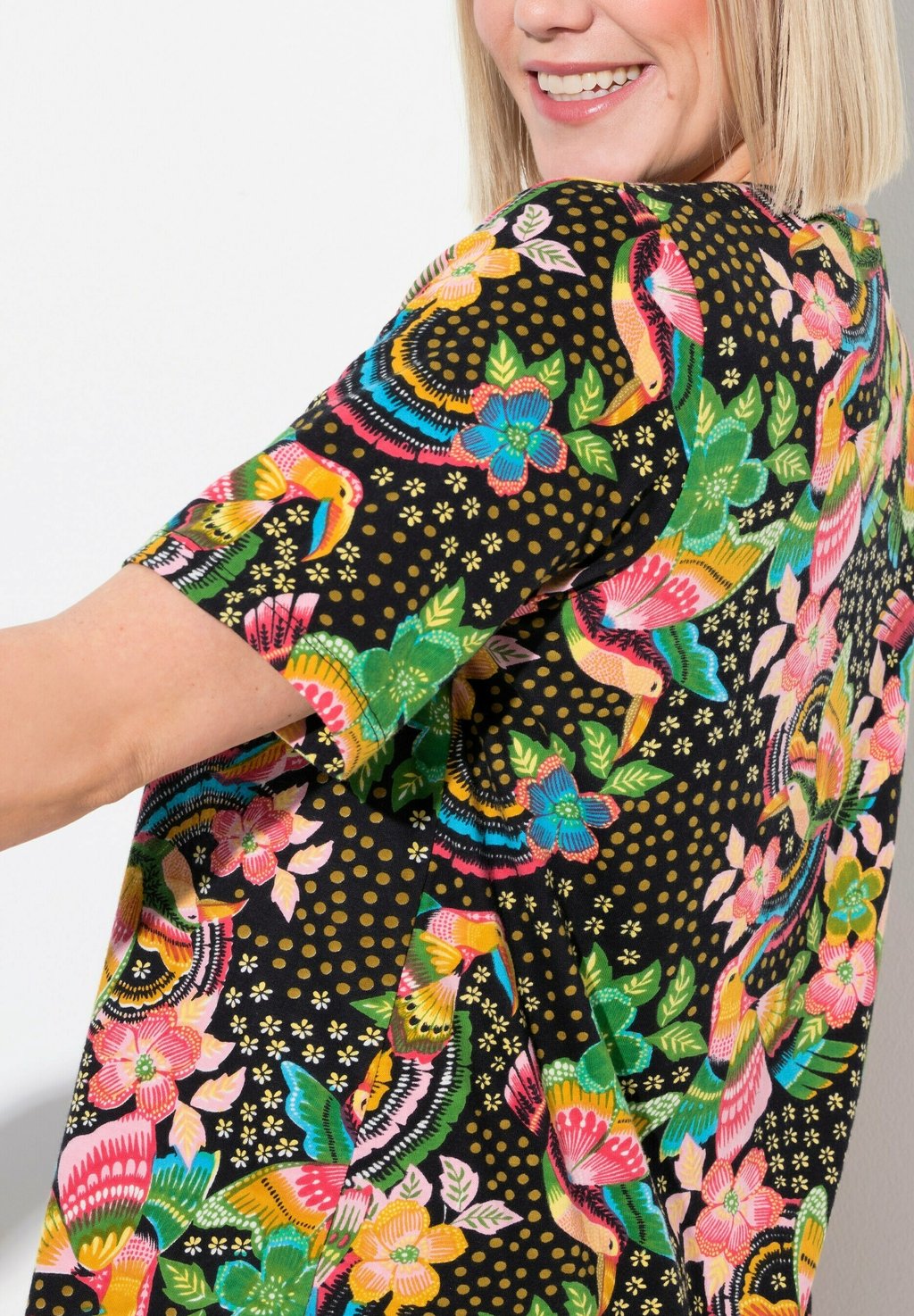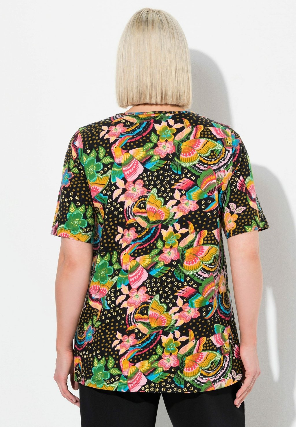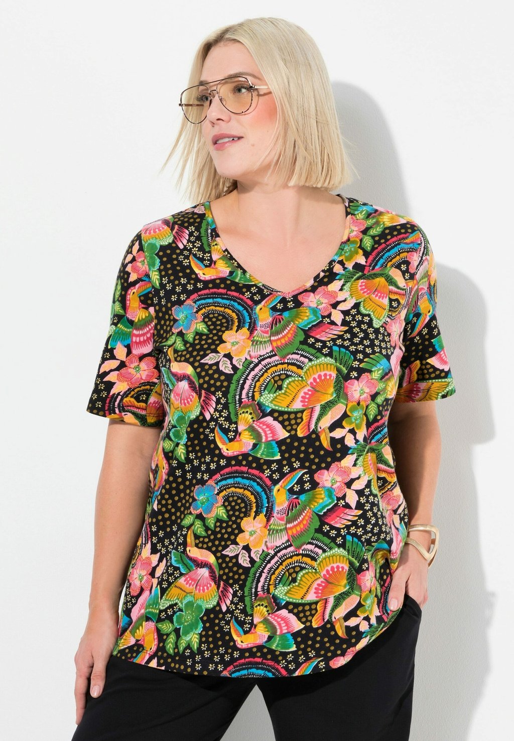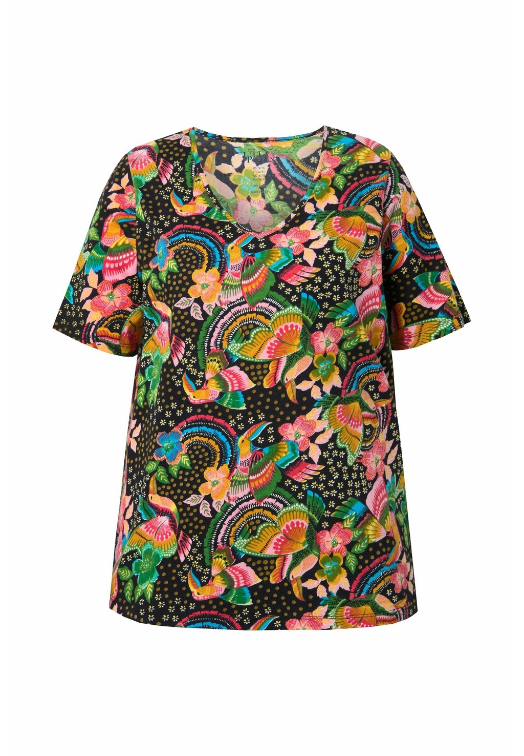 Футболка с принтом RAINBOW SHORT SLEEVE V-NECK TEE Ulla Popken, черный