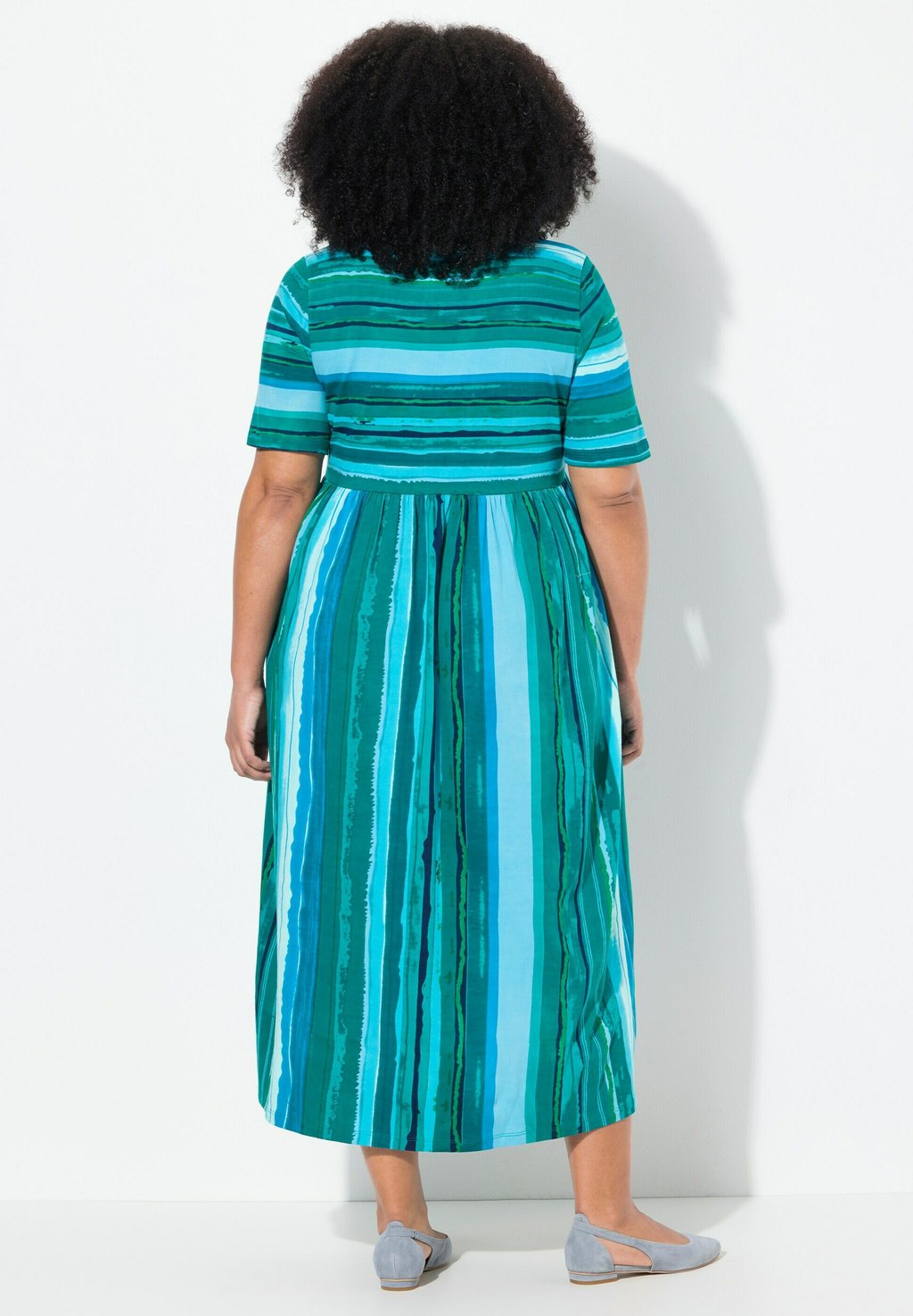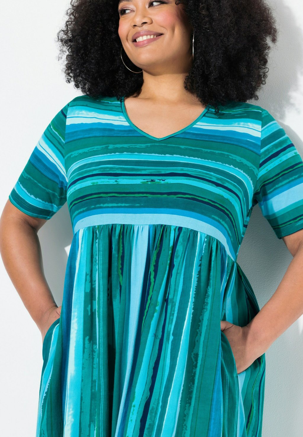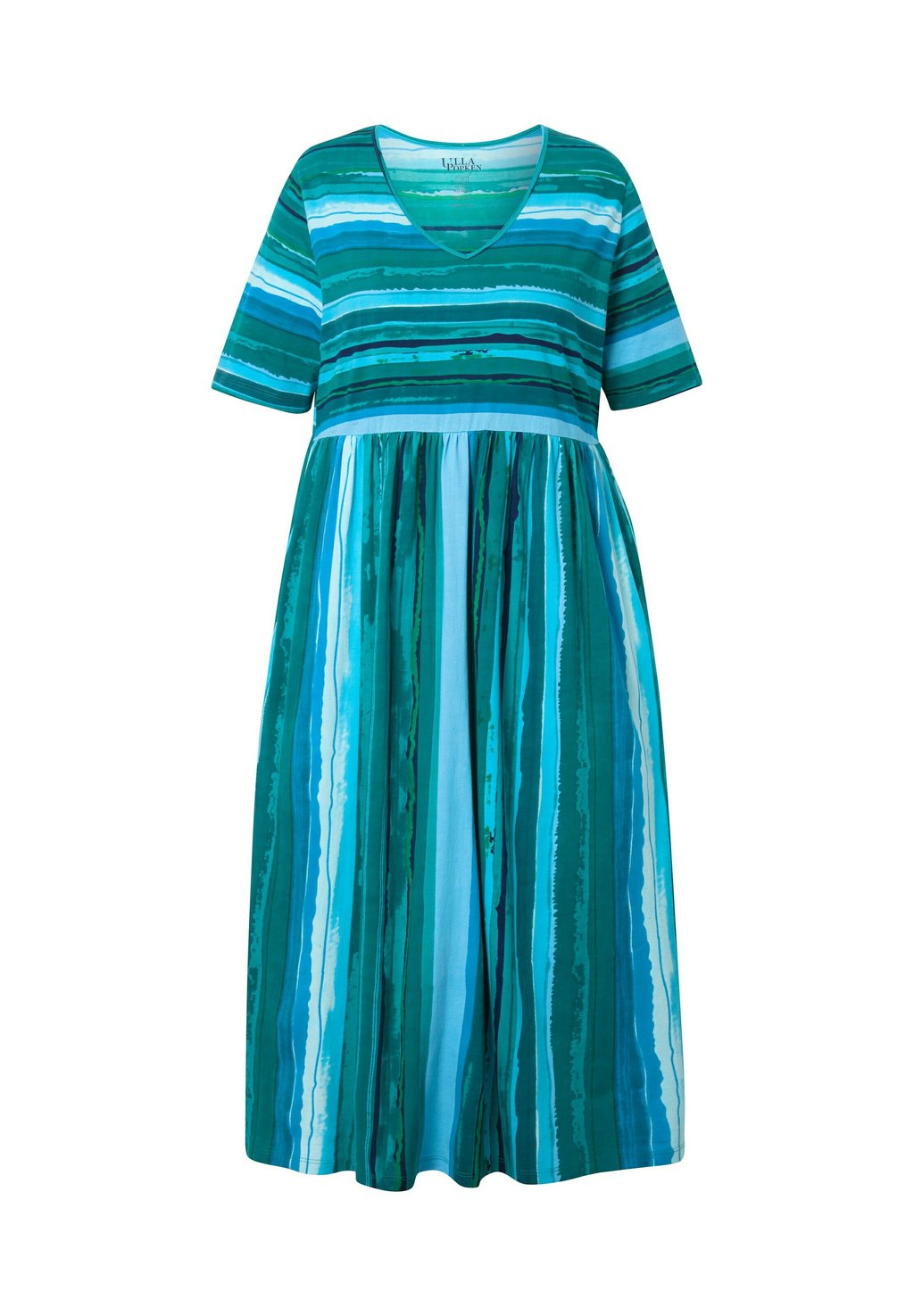 Платье из джерси RAINBOW STRIPE SHORT SLEEVE POCKET EMPIRE Ulla Popken, синий