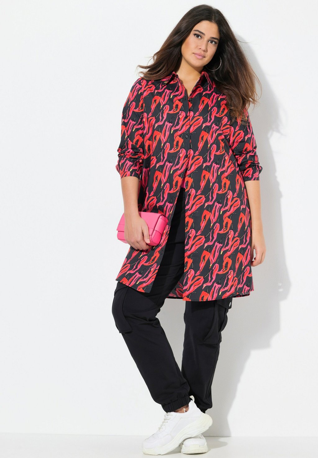 Платье-рубашка PEPPER PRINT LONG SLEEVE BUTTON DOWN Ulla Popken, черный