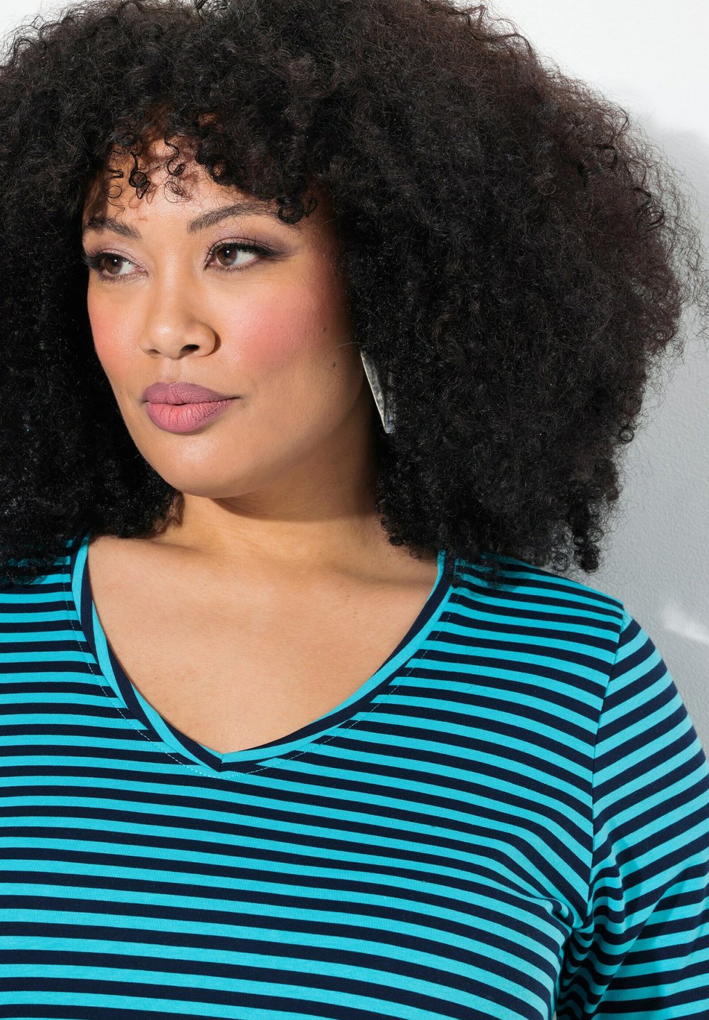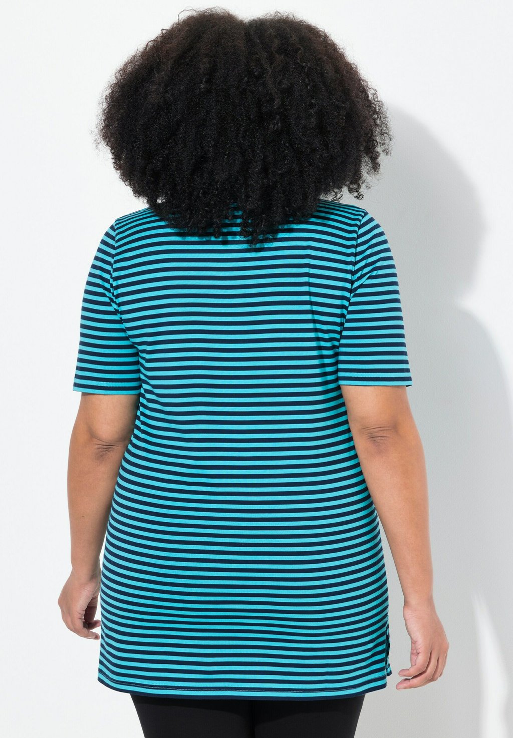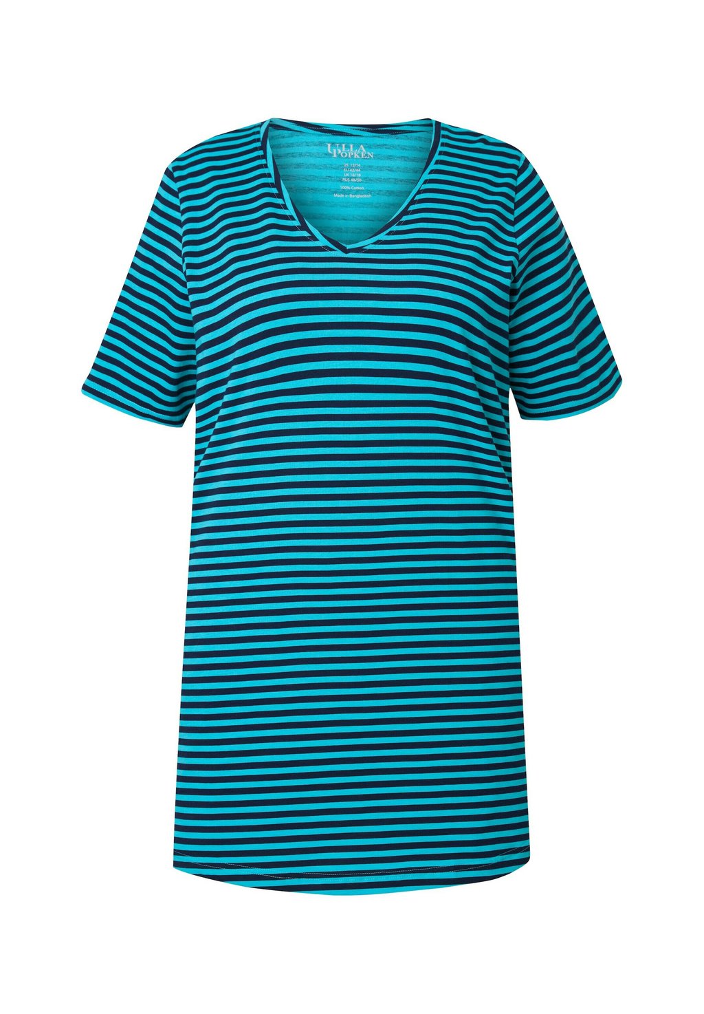 Футболка с принтом STRIPE V-NECK SHORT SLEEVE Ulla Popken, синий