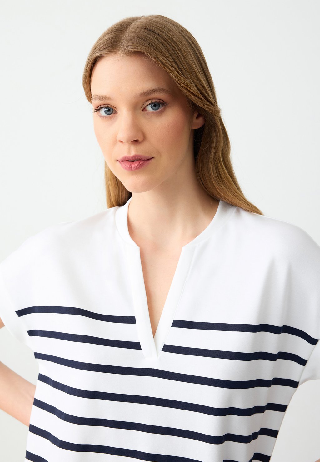Футболка с принтом STRIPED V-NECK Jimmy Key, белый