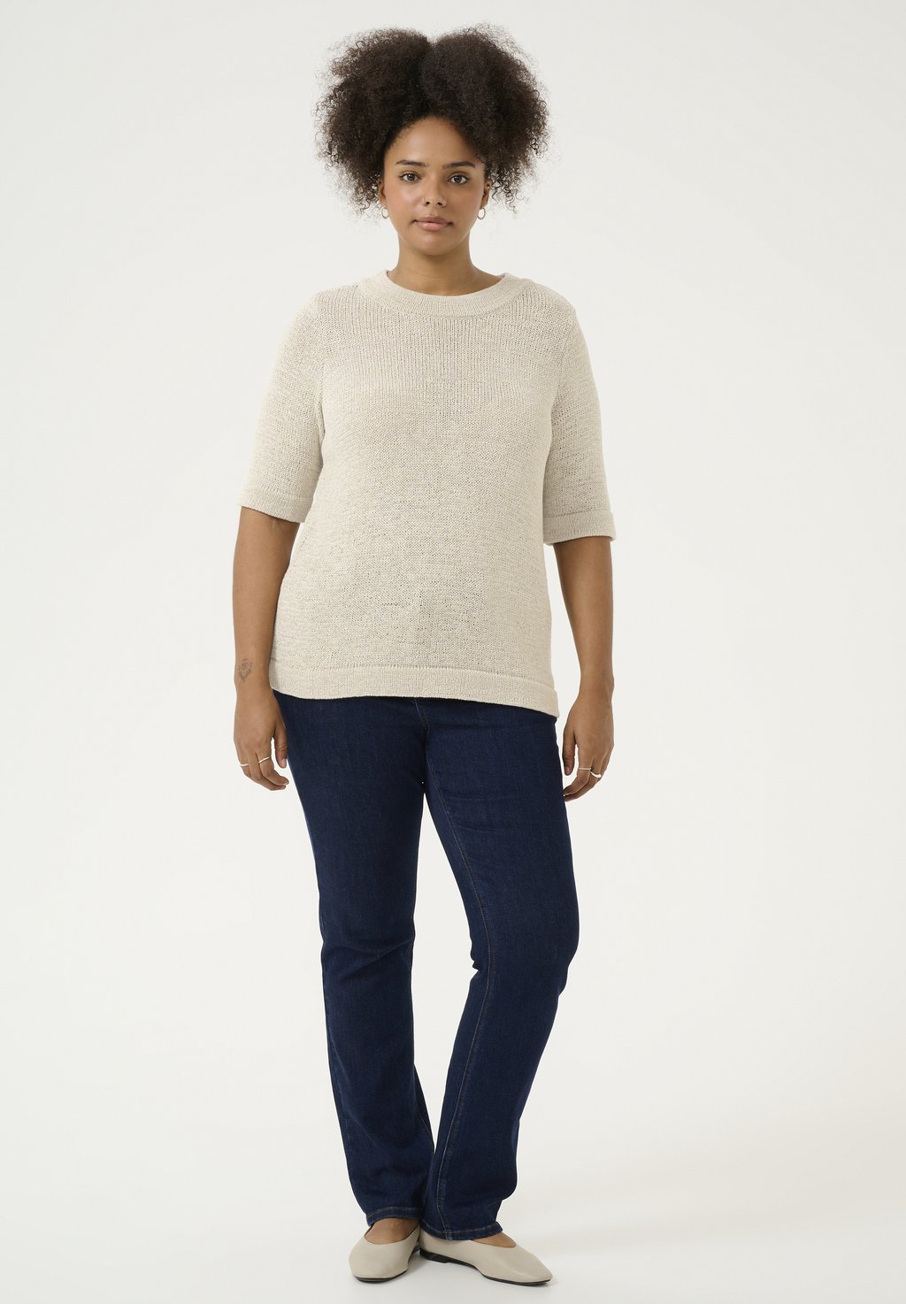 Базовая футболка EVITA PULLOVER Kaffe Curve, бежевый