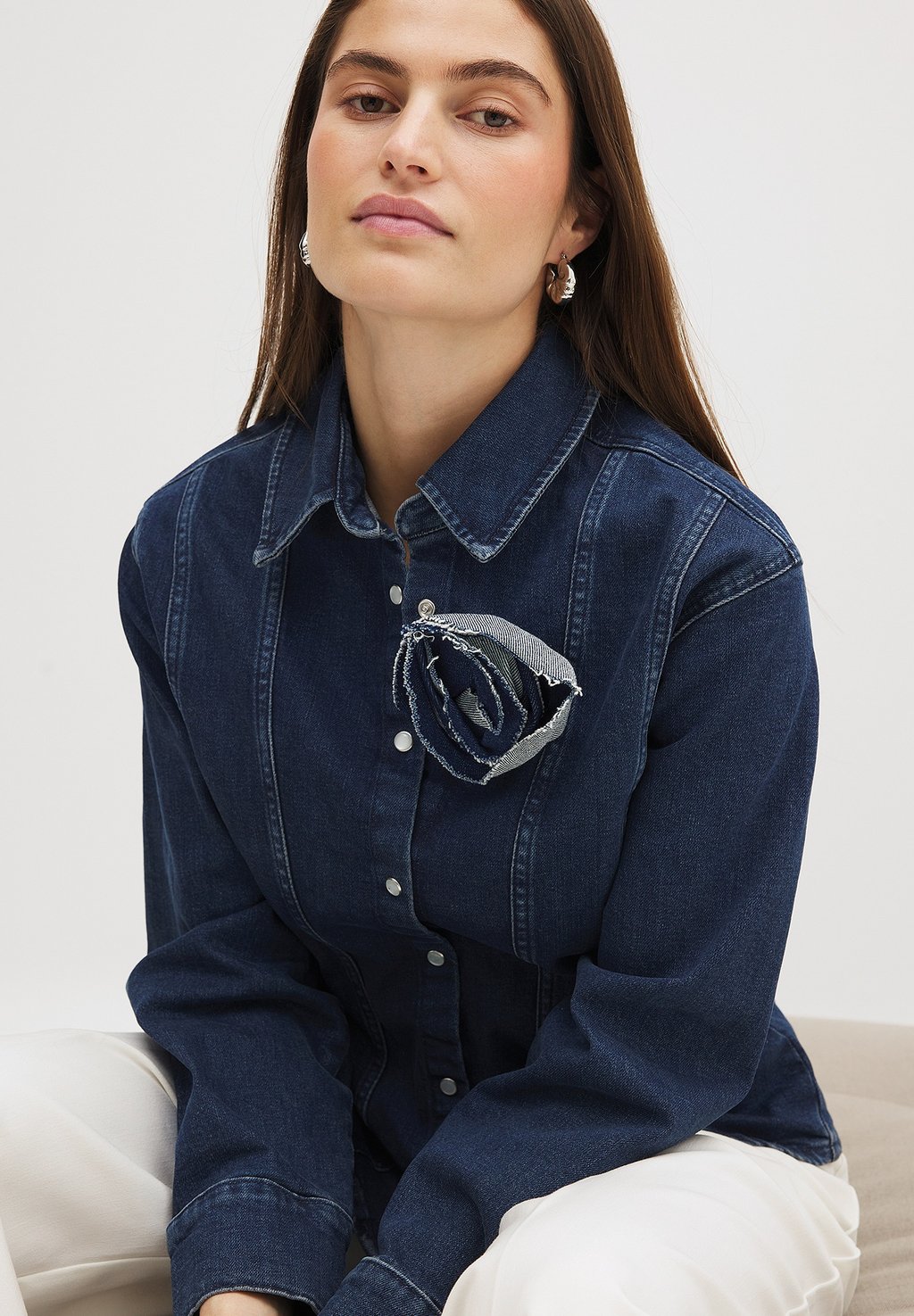 Блузка на пуговицах MARKED WAIST NA-KD, темно-синий