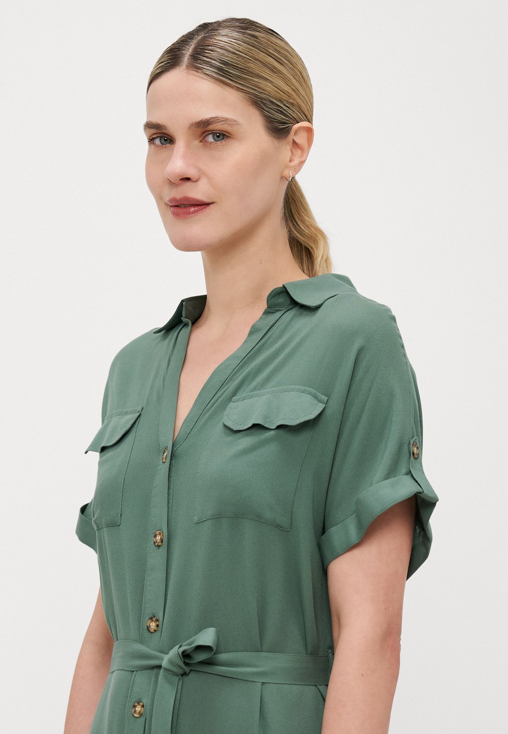 Платье макси VMBUMPY ANKLE SHIRT DRESS Vero Moda Tall, зеленый
