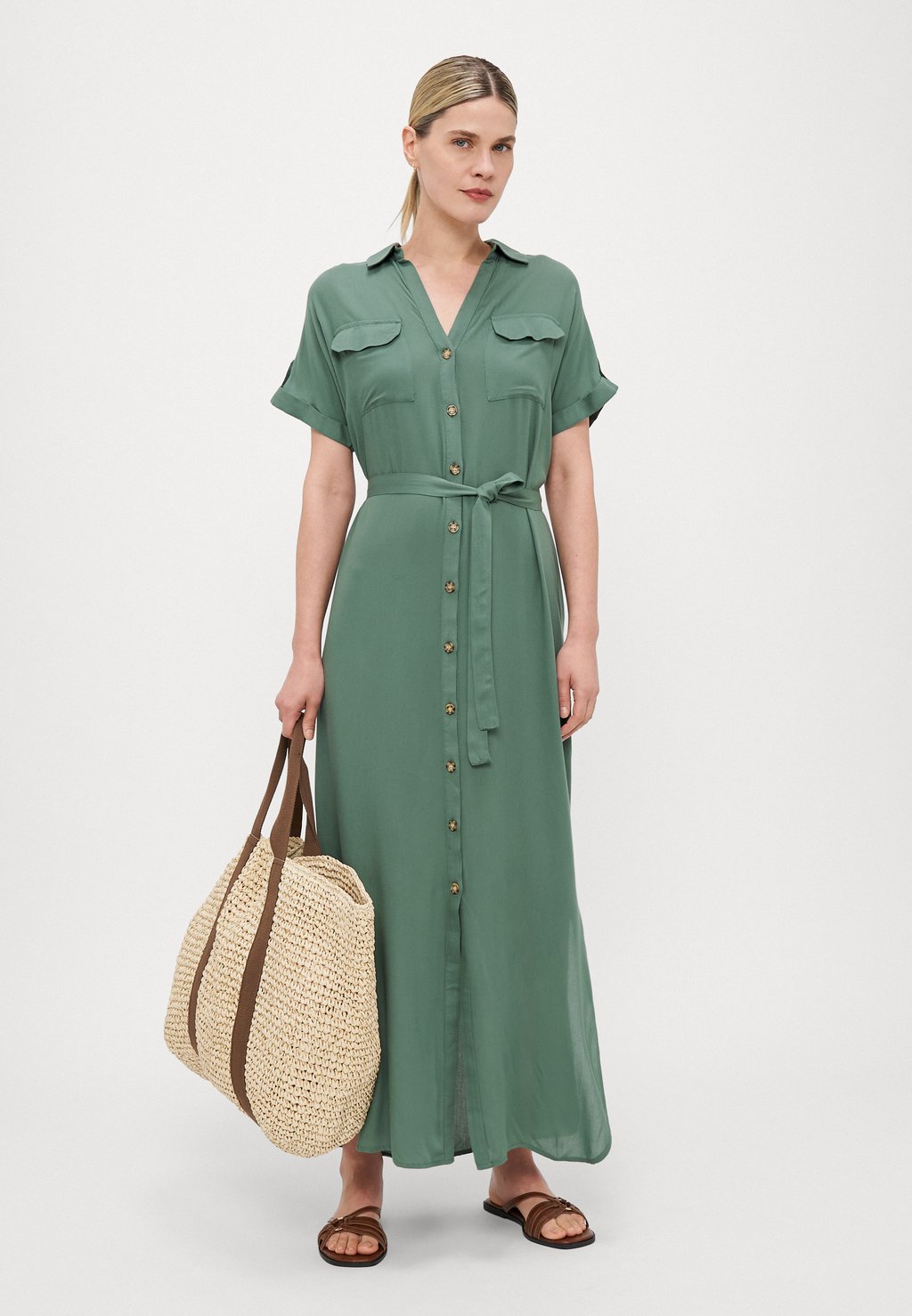 Платье макси VMBUMPY ANKLE SHIRT DRESS Vero Moda Tall, зеленый 5 778₽